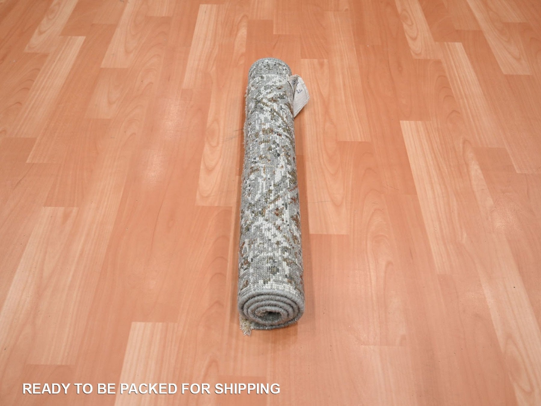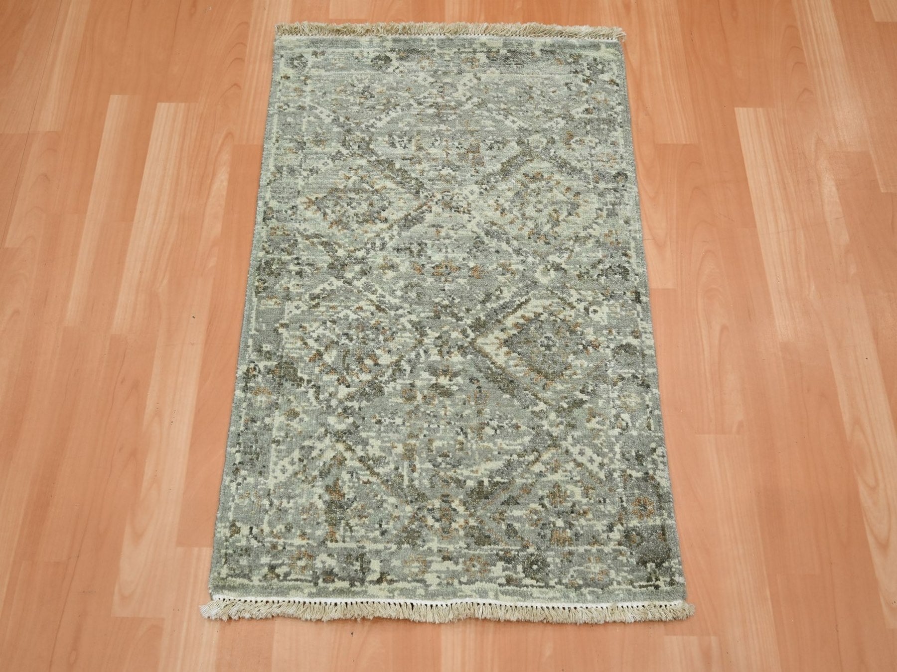 1'11" x 2'10" New Hand Knotted Grey Wool Rectangle Oriental Rug - MOA10275761