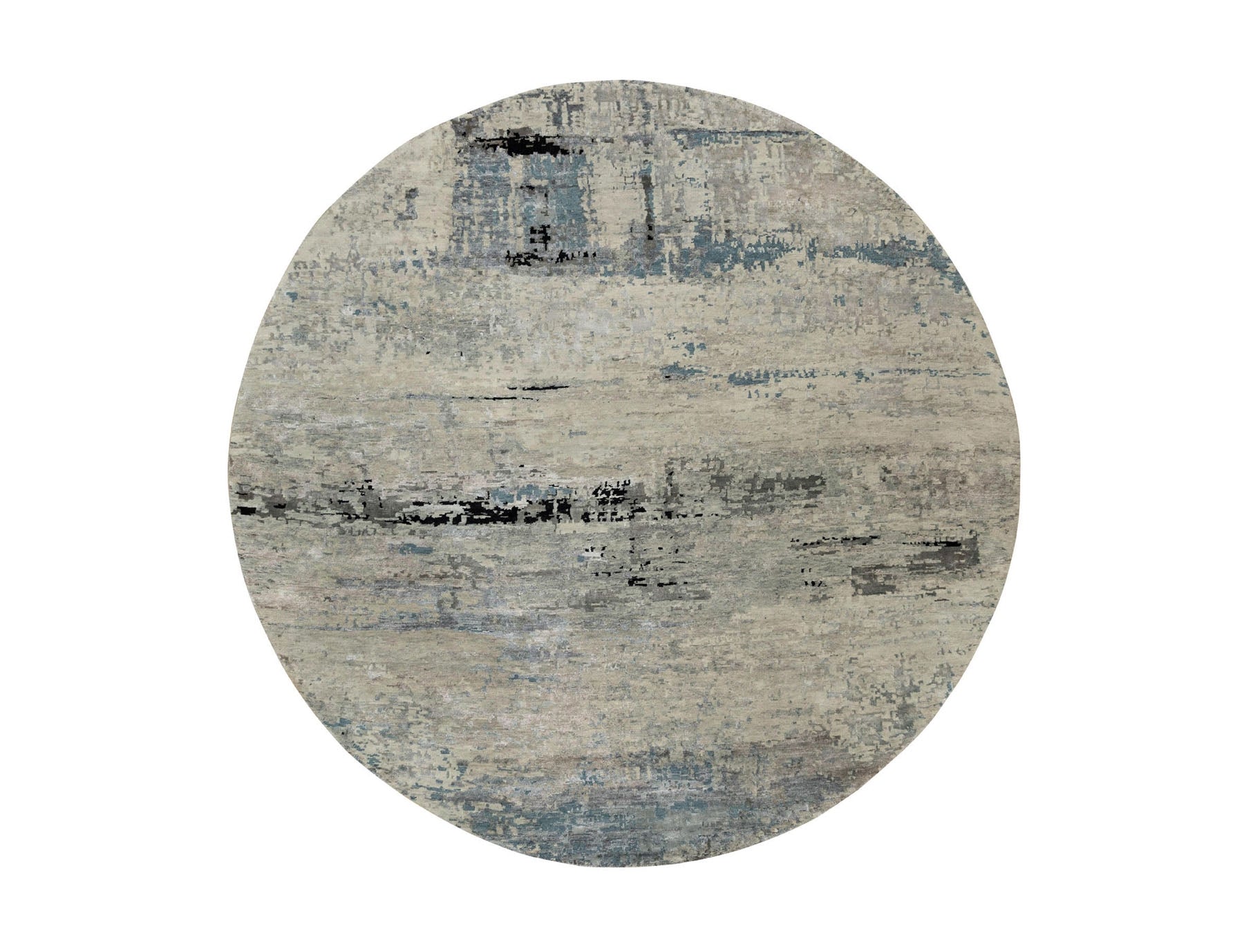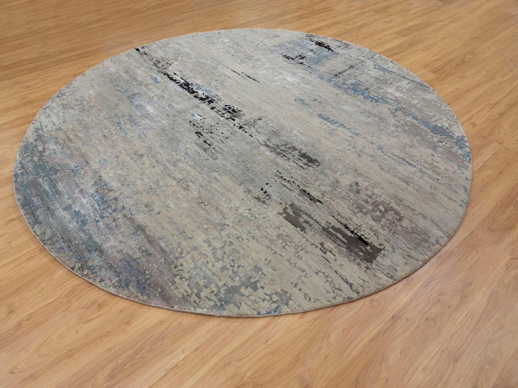 10'0" x 10'0" New Hand Knotted Beige Wool & Silk Round Oriental Rug - MOA10258480