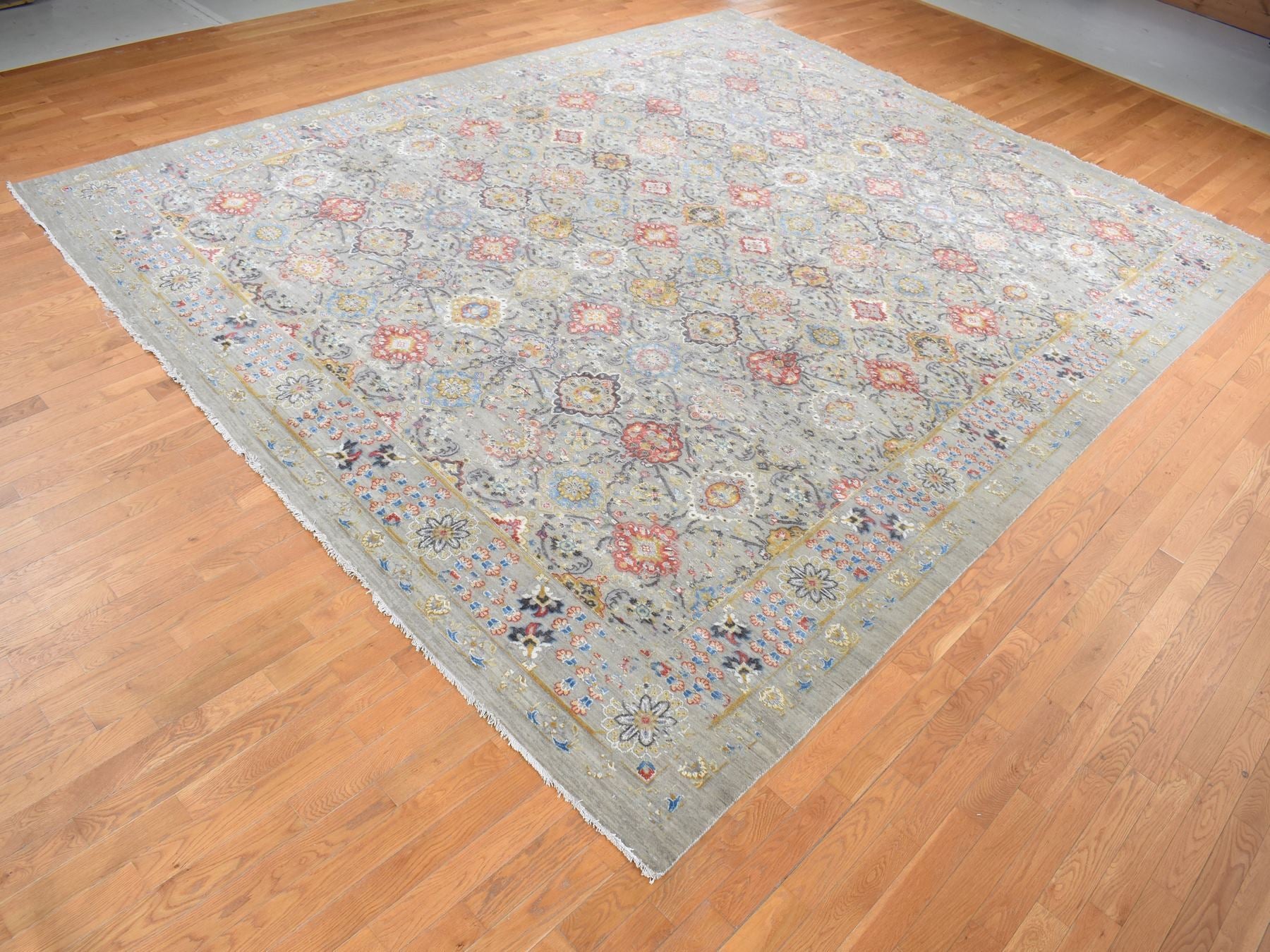 12'0" x 15'1" New Hand Knotted Beige Wool & Pure Silk Rectangle Oriental Rug - MOA10287650