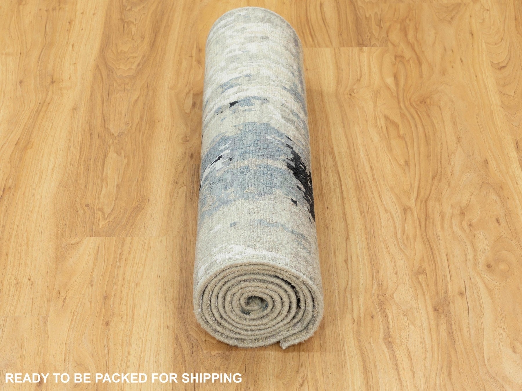 2'5" x 9'9" New Hand Knotted Beige Wool & Silk Runner Oriental Rug - MOA10258498