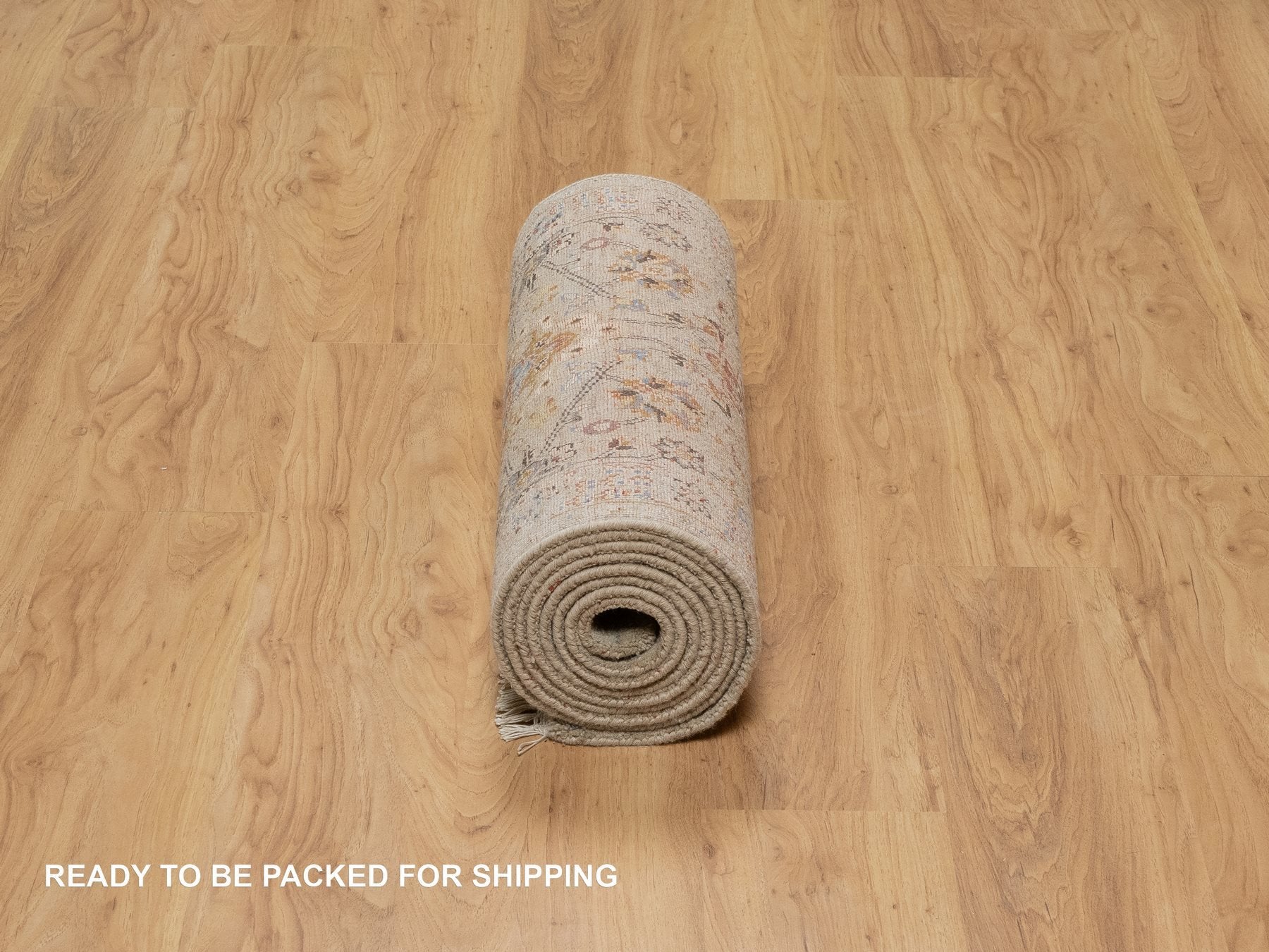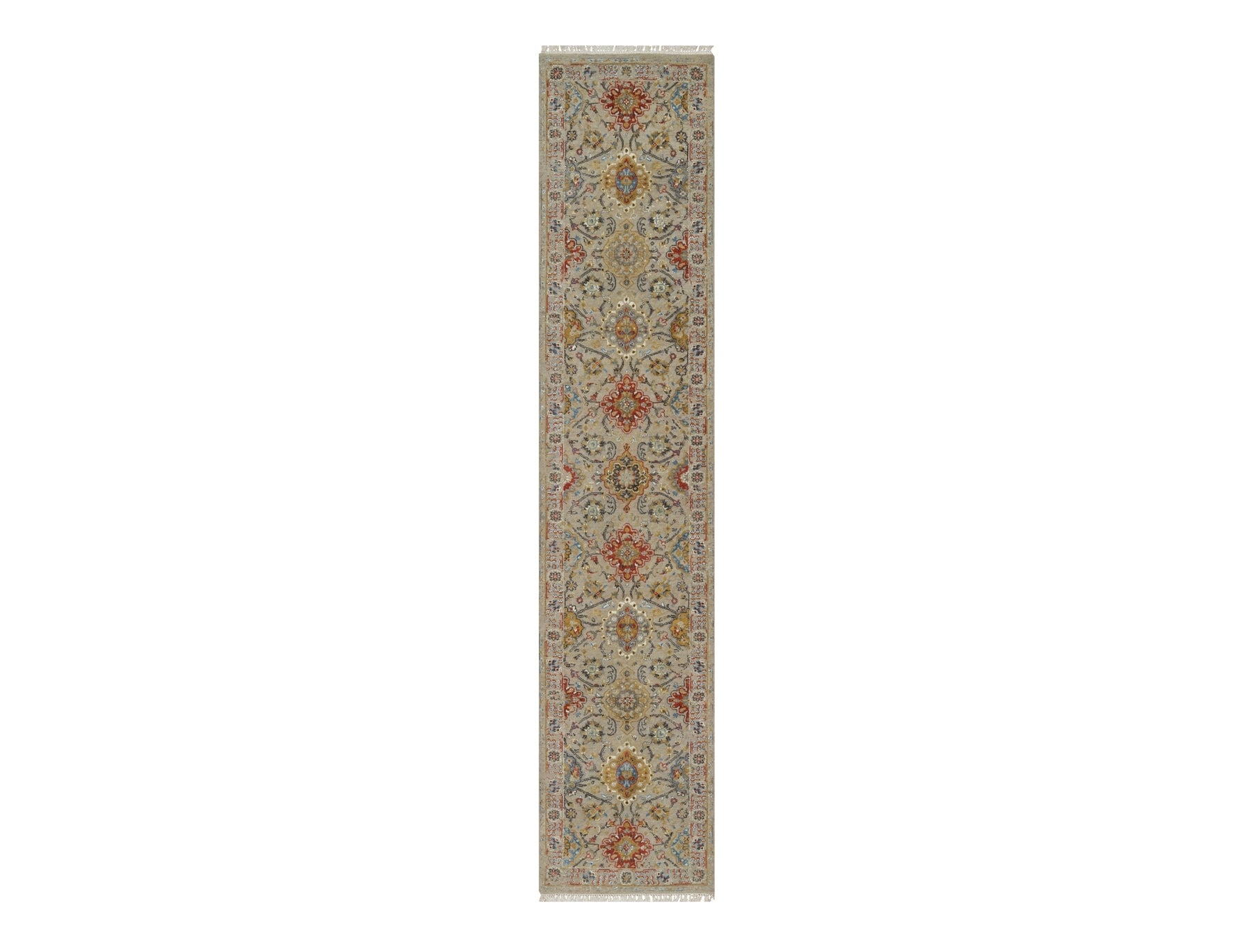 2'6" x 11'10" New Hand Knotted Beige Wool & Pure Silk Runner Oriental Rug - MOA10291286