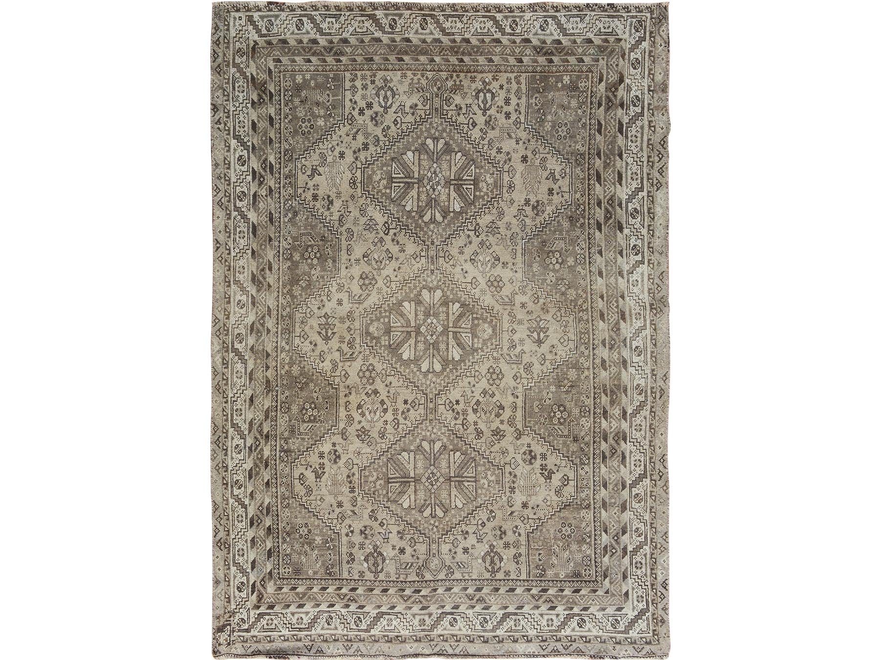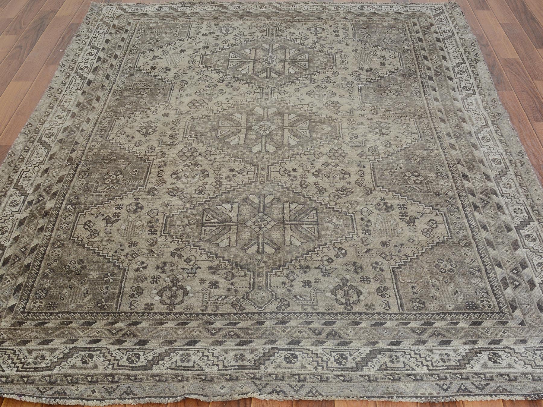 5'8" x 8'0" New Hand Knotted Beige Worn Wool Rectangle Oriental Rug - MOA10257242