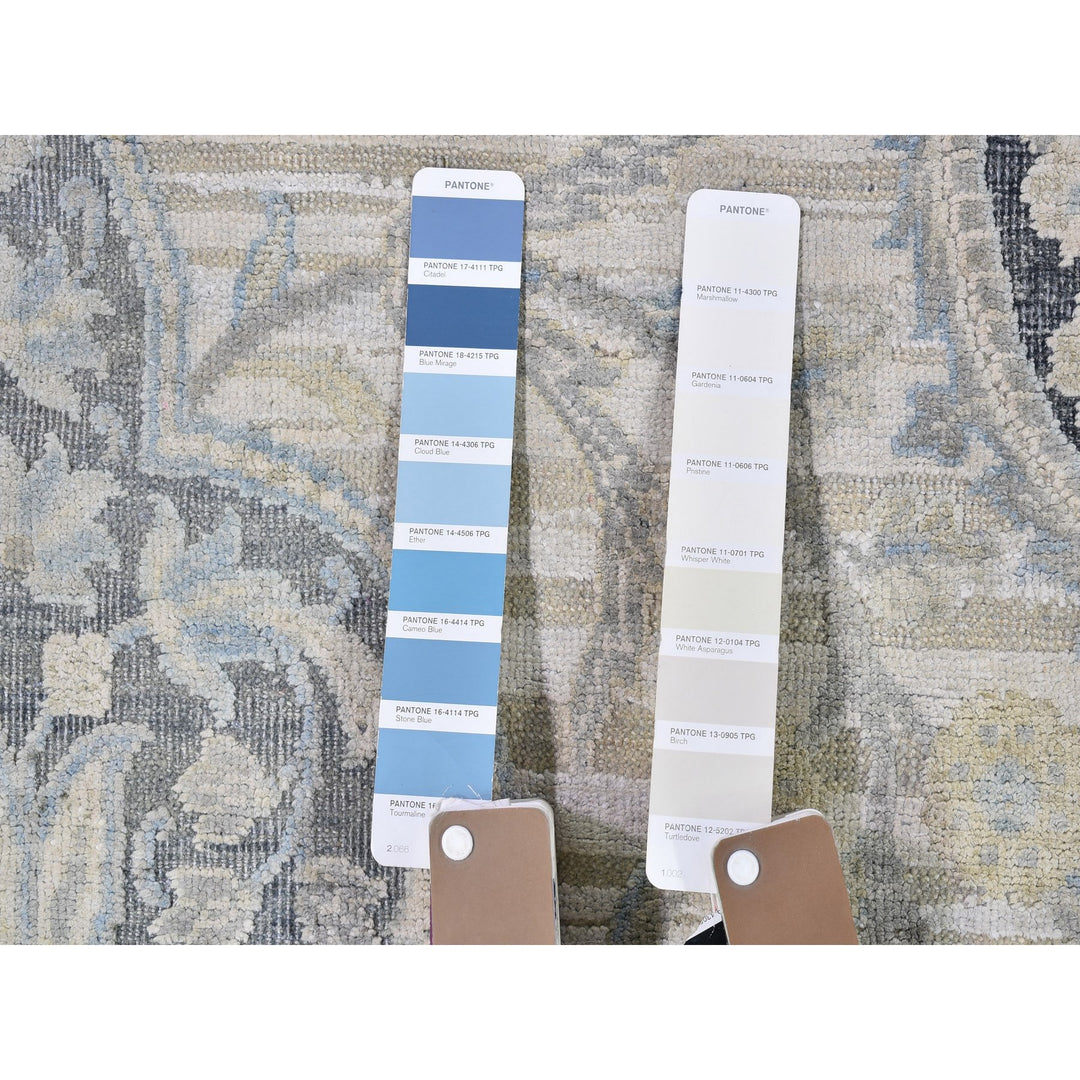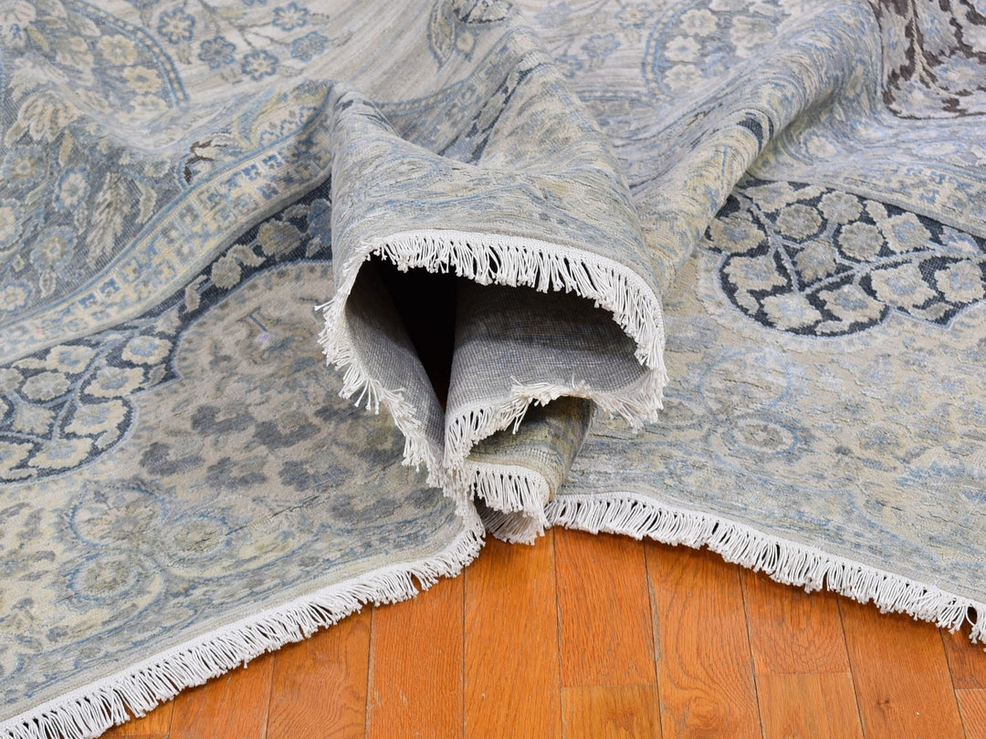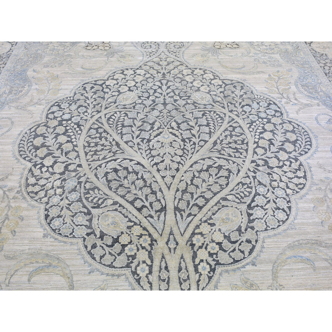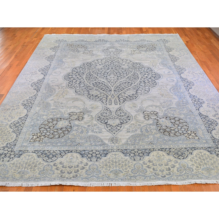 11'10" x 16'0" New Hand Knotted Ivory Wool & Silk Rectangle Oriental Rug - MOA10266735