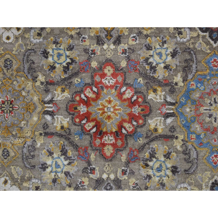 12'0" x 18'0" New Hand Knotted Grey Wool & Silk Rectangle Oriental Rug - MOA10278033