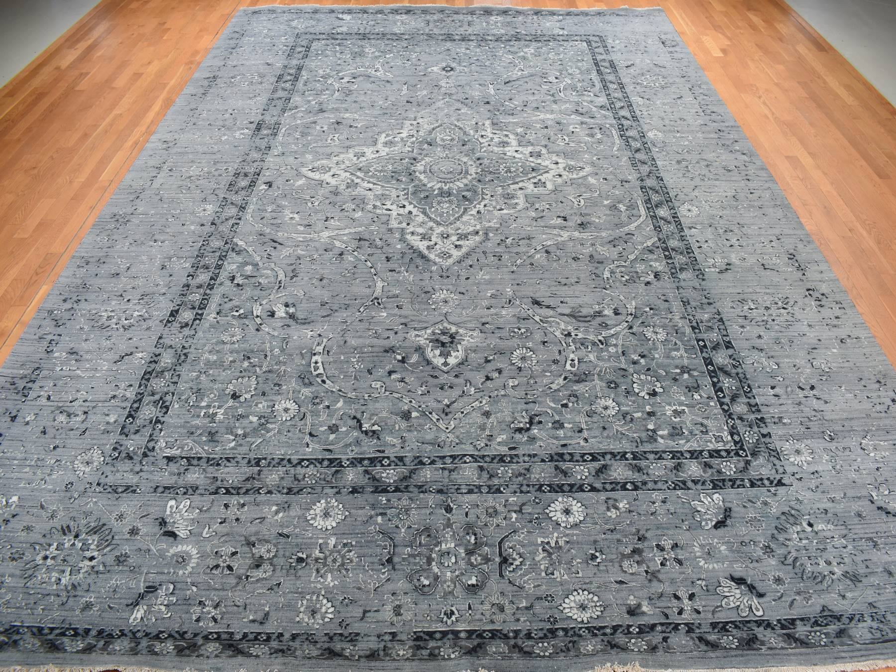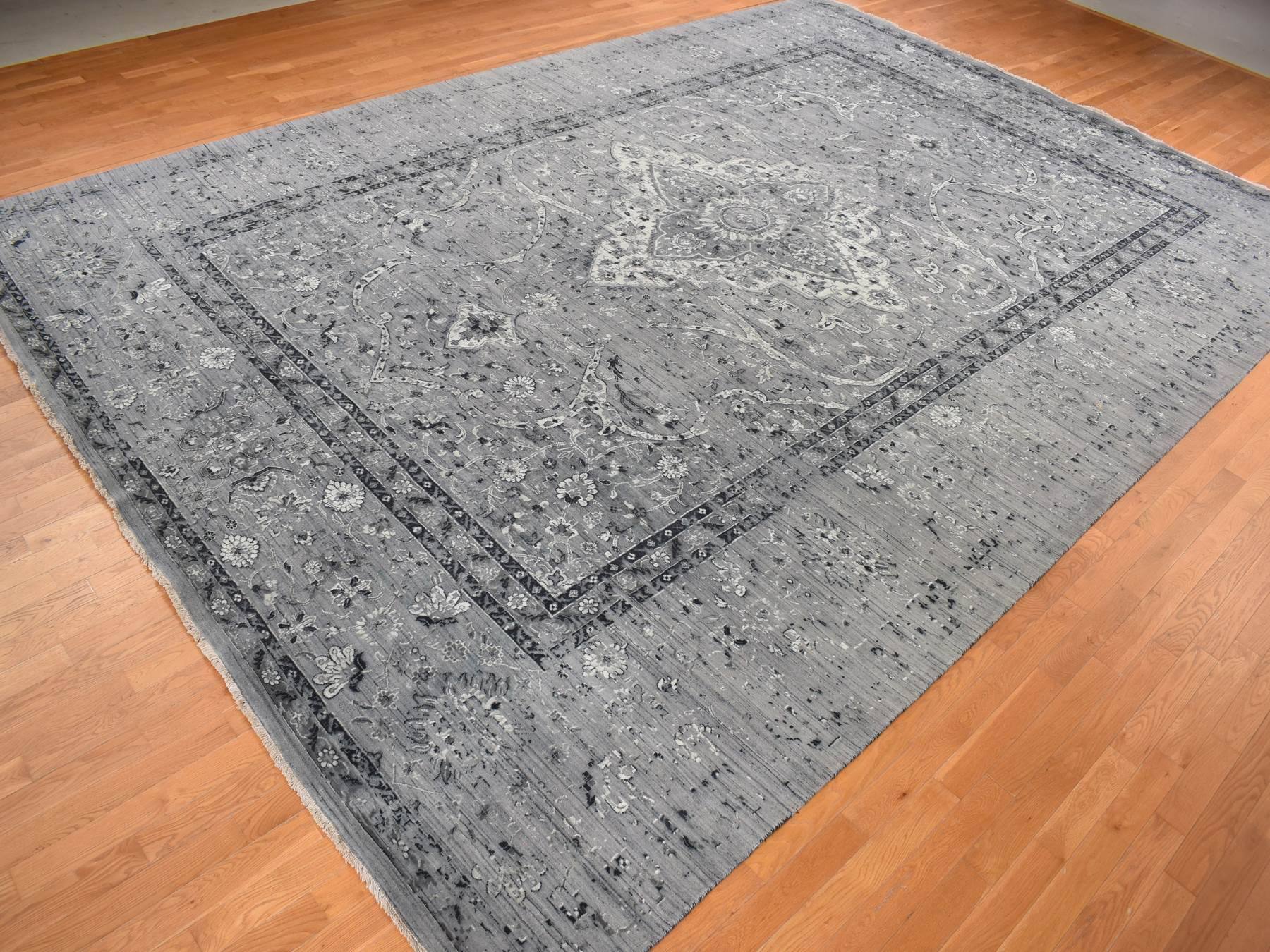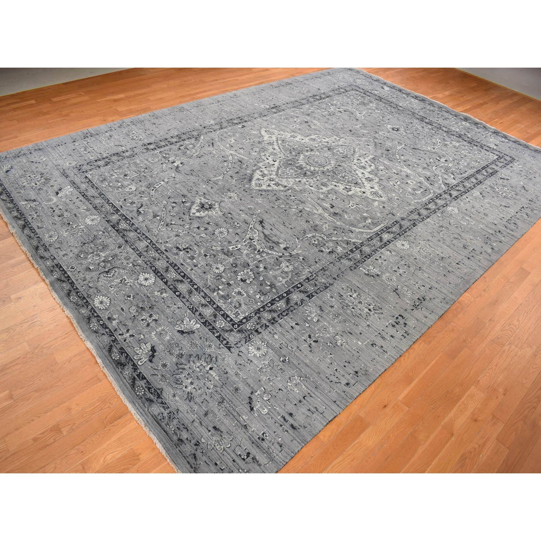 12'1" x 17'7" New Hand Knotted Grey Wool Rectangle Oriental Rug - MOA10278008