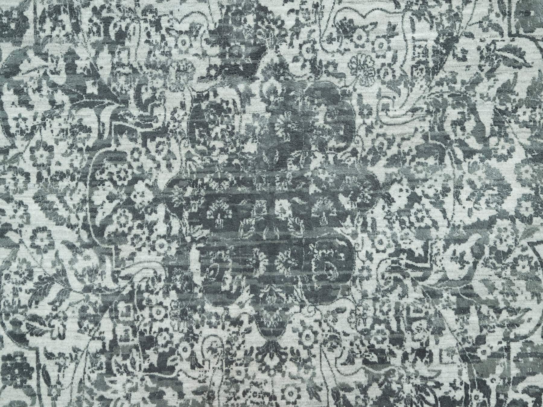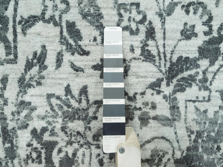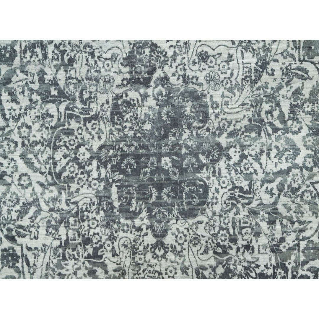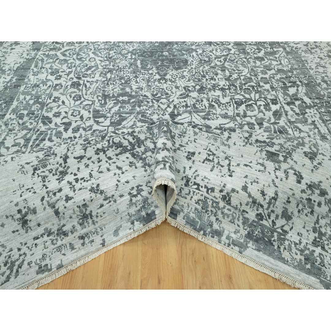 12'1" x 18'0" New Hand Knotted Grey Wool & Silk Rectangle Oriental Rug - MOA10290546