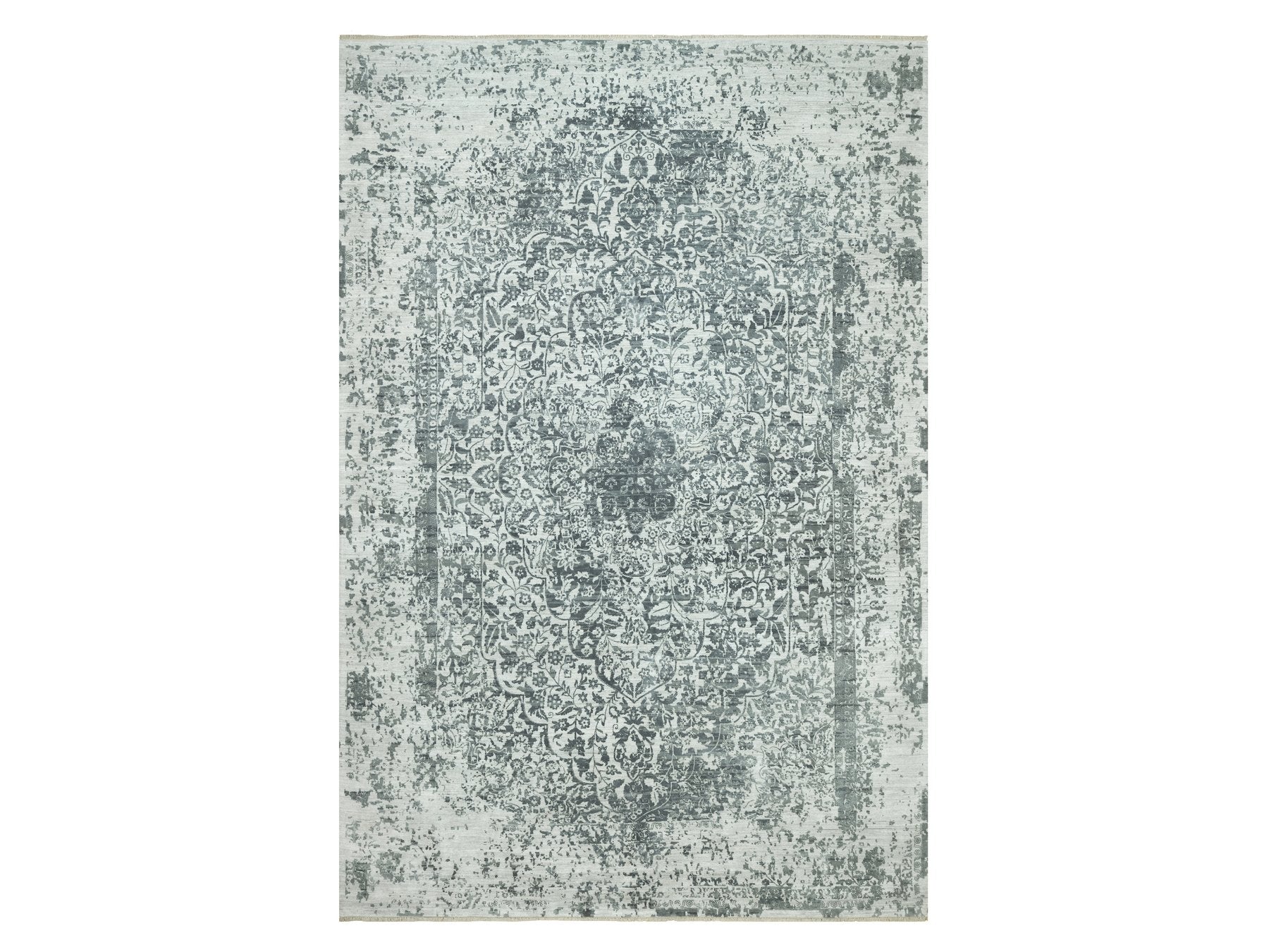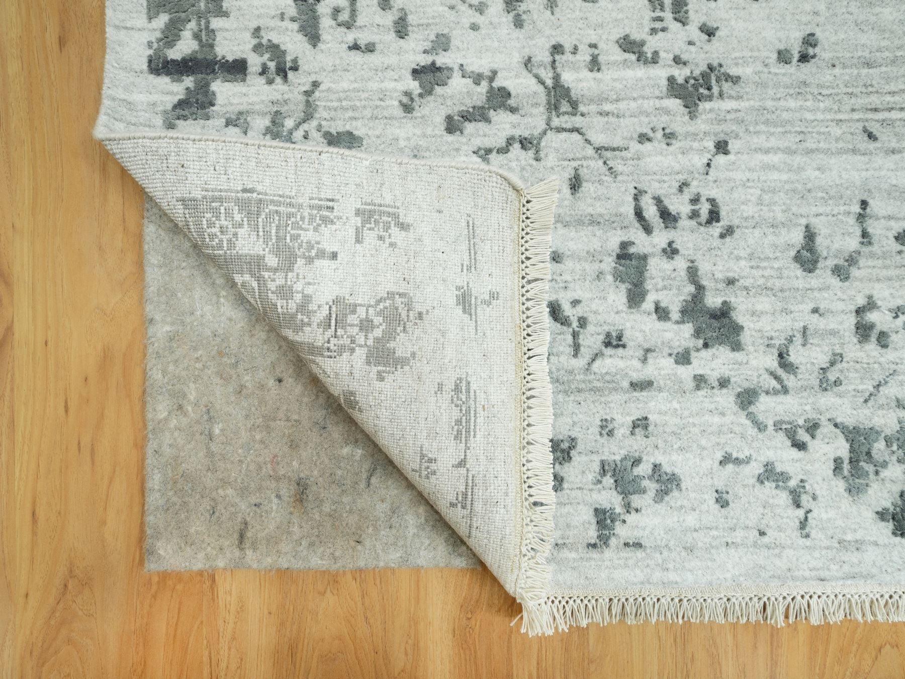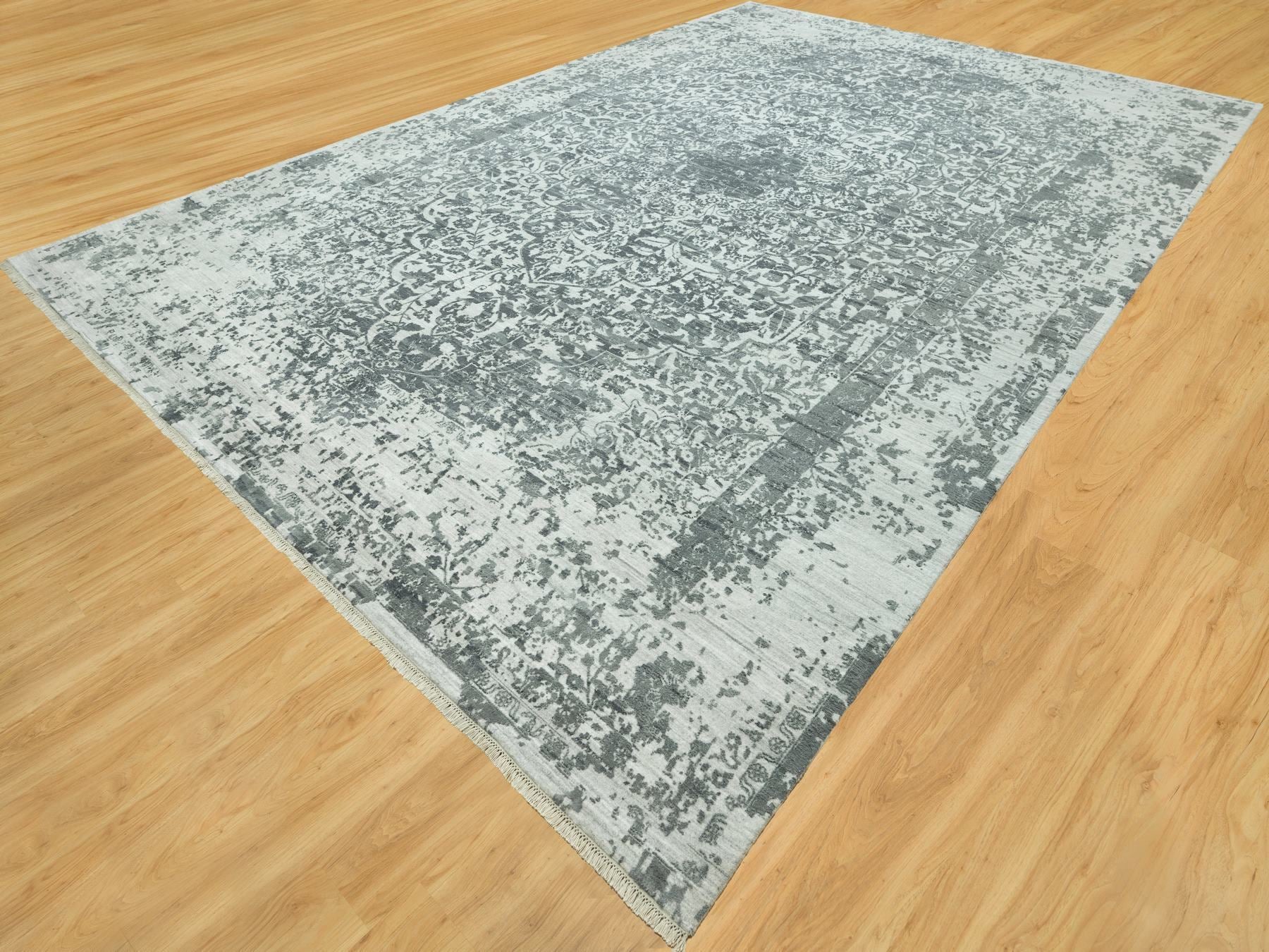 12'1" x 18'0" New Hand Knotted Grey Wool & Silk Rectangle Oriental Rug - MOA10290546
