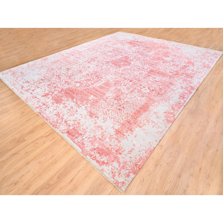 12'2" x 15'0" New Hand Knotted Ivory Wool & Pure Silk Rectangle Oriental Rug - MOA10262356