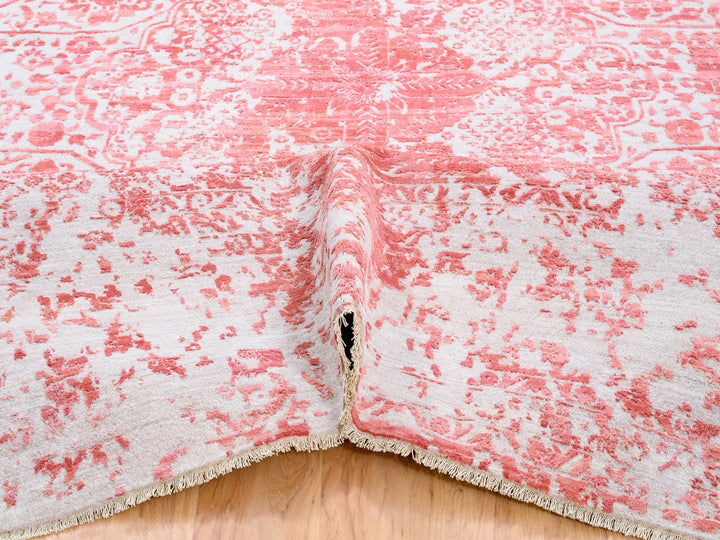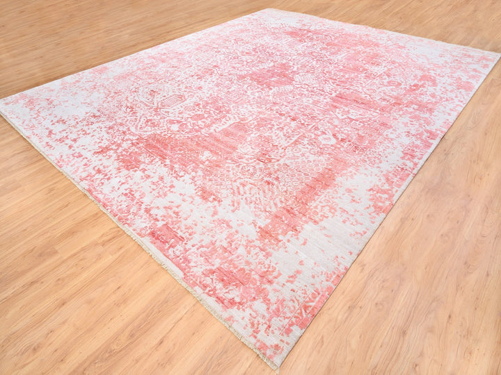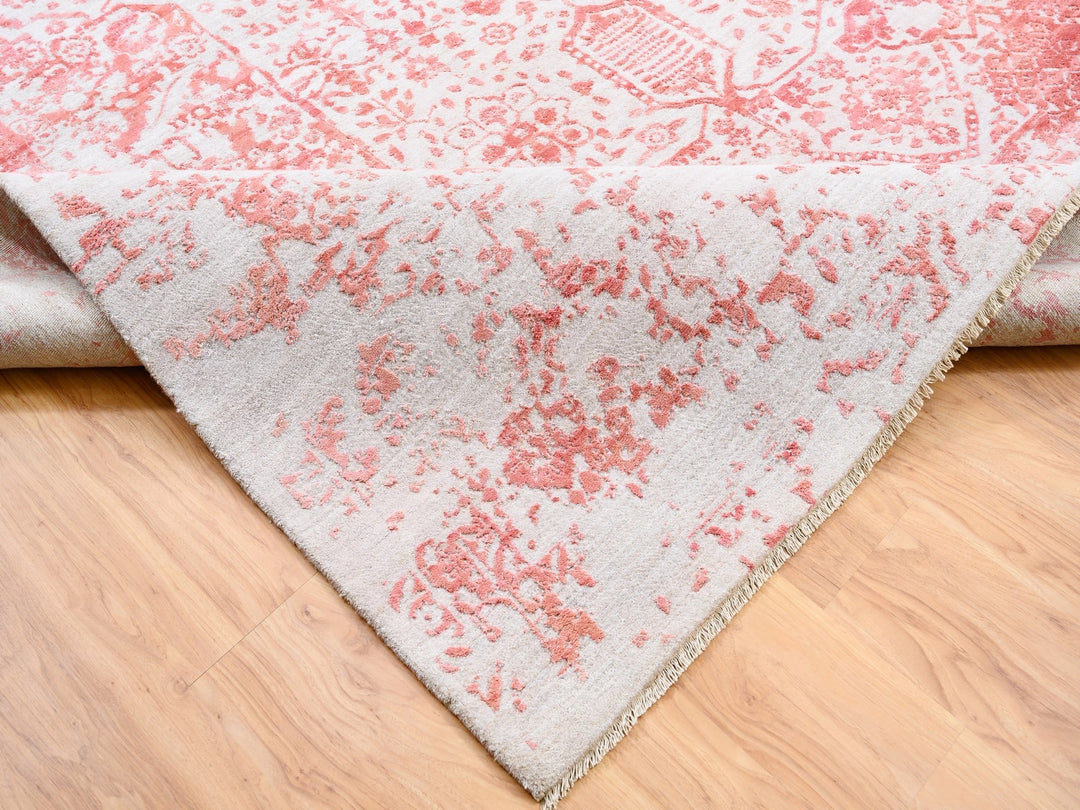 12'2" x 15'0" New Hand Knotted Pink Wool & Pure Silk Rectangle Oriental Rug - MOA10262356