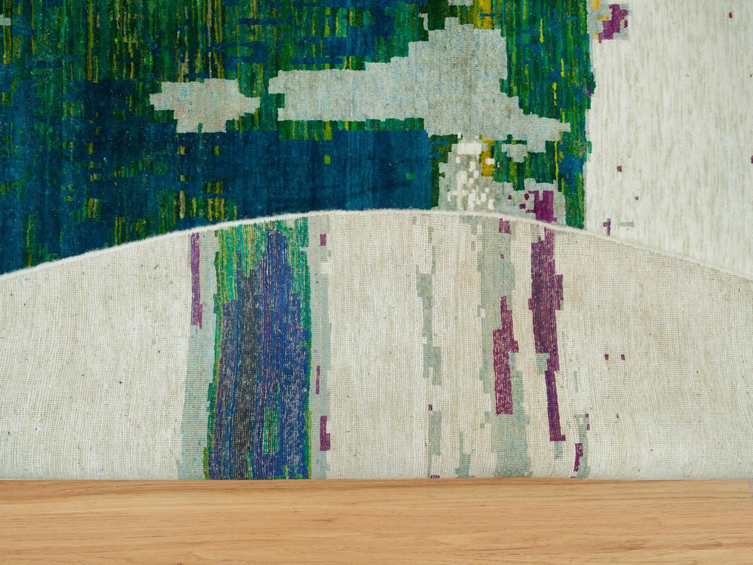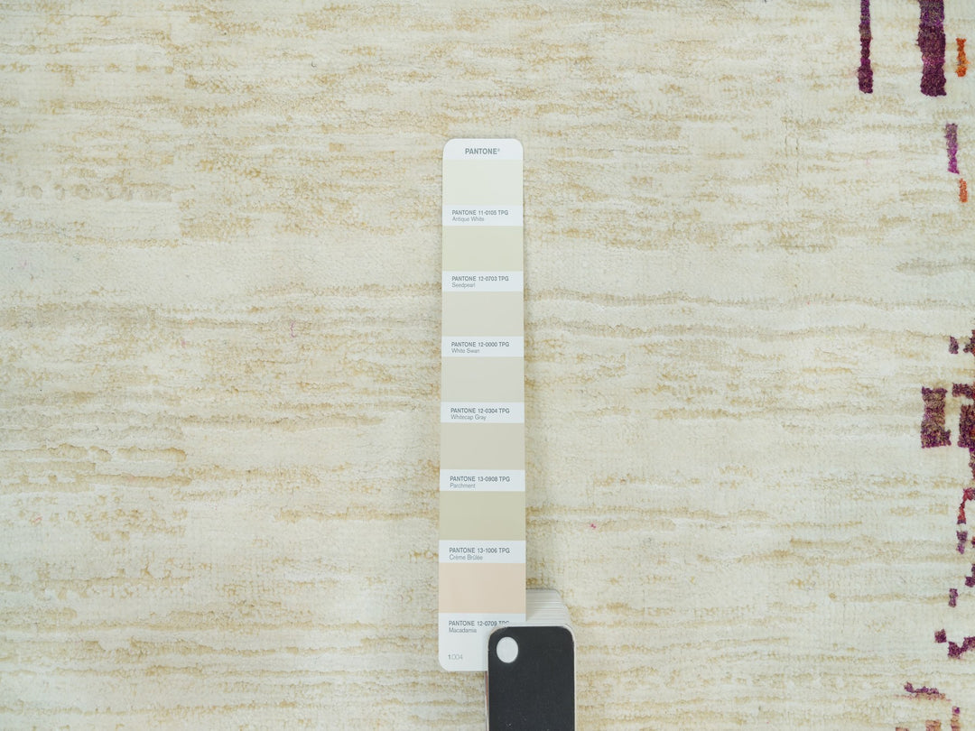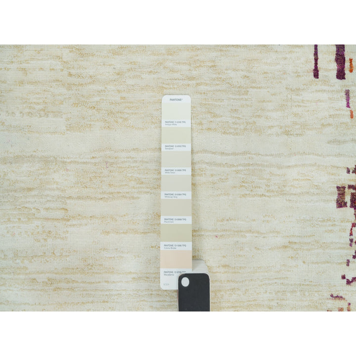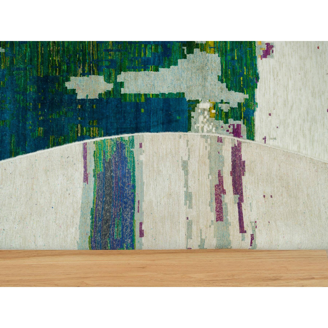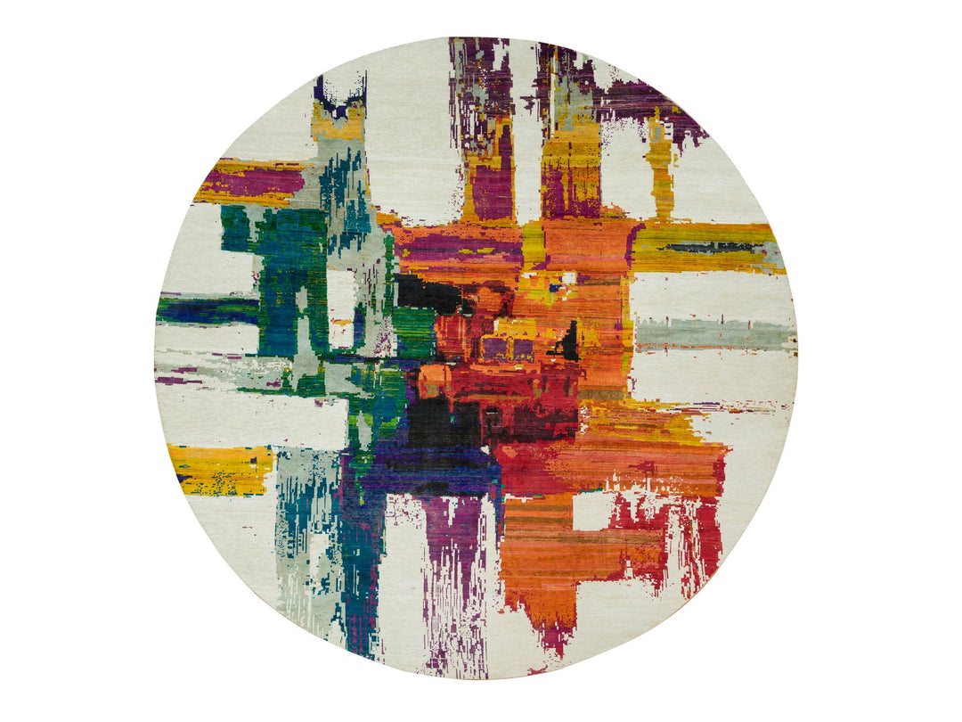 13'8" x 13'8" New Hand Knotted Ivory Wool & Silk Round Oriental Rug - MOA10290265