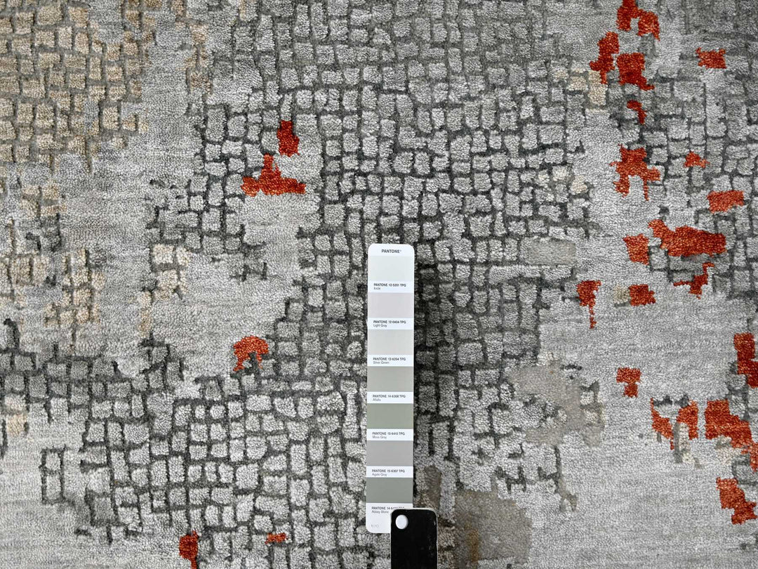 13'9" x 17'9" New Hand Knotted Grey Wool & Silk Rectangle Oriental Rug - MOA10284455