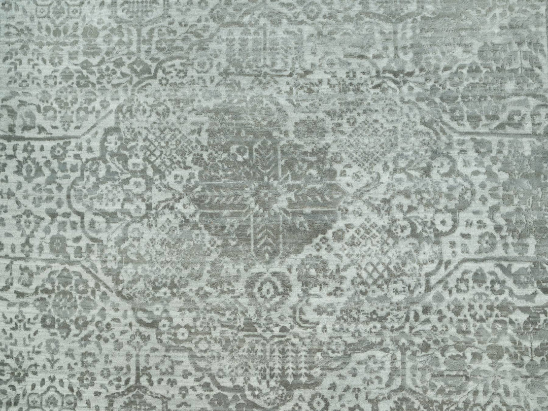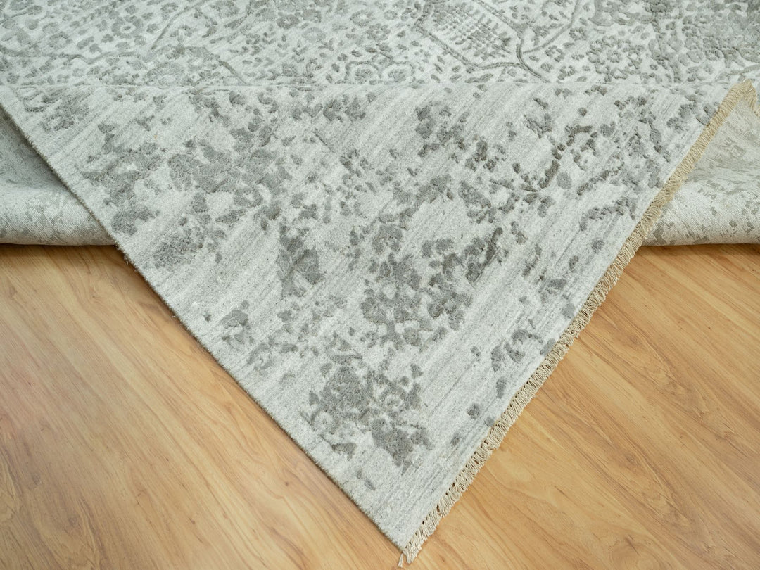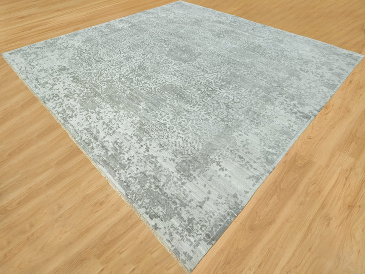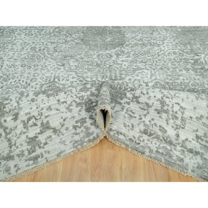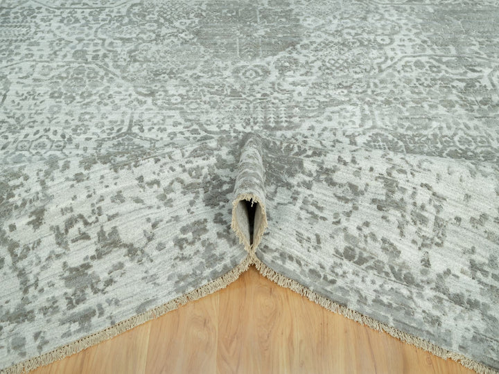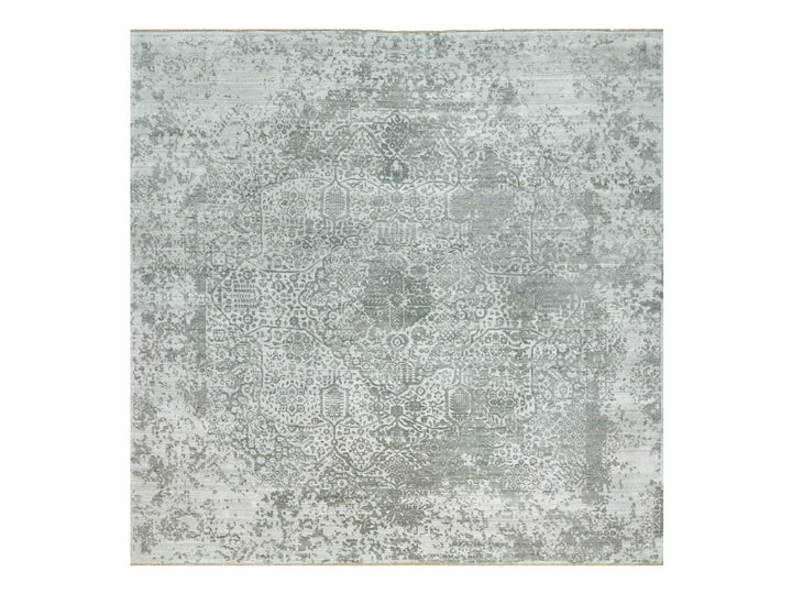 14'0" x 13'11" New Hand Knotted Grey Wool & Silk Square Oriental Rug - MOA10290484