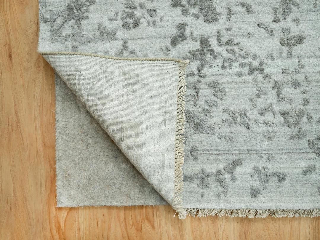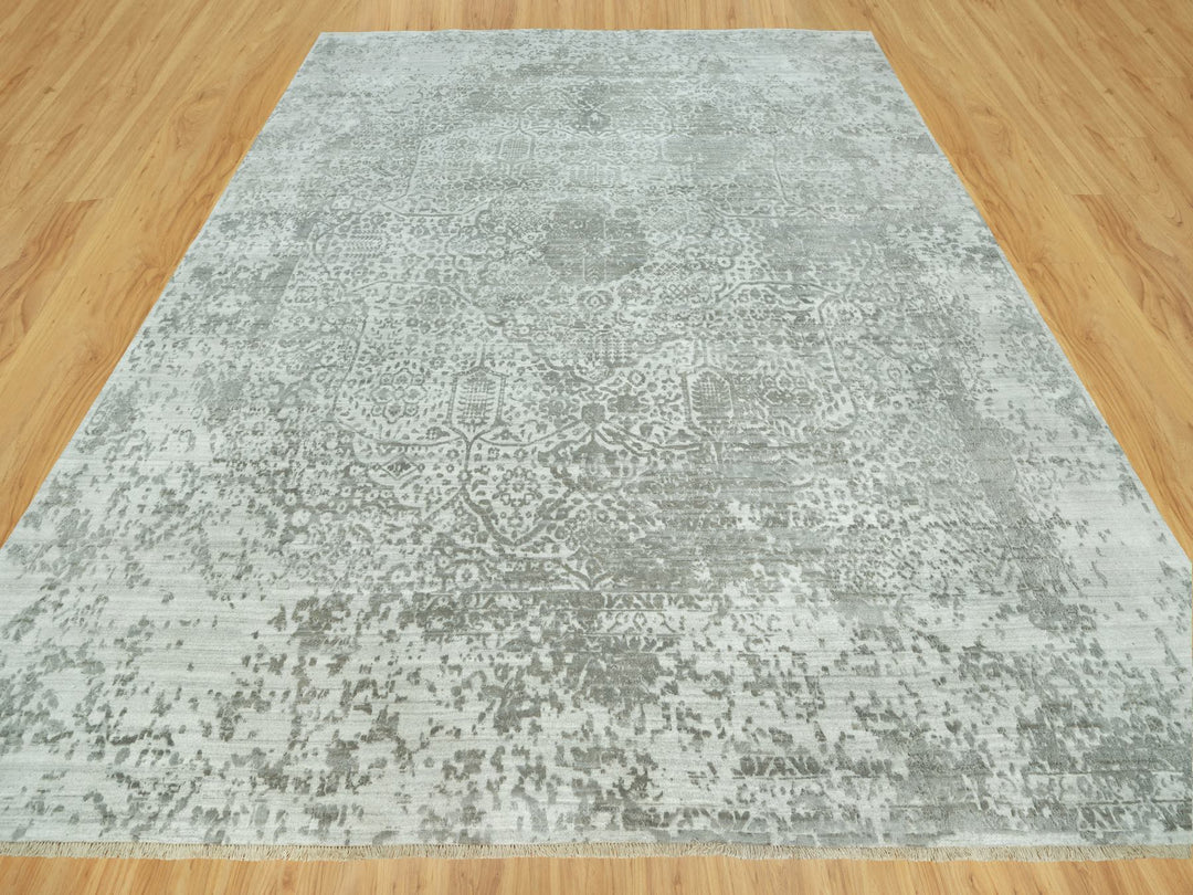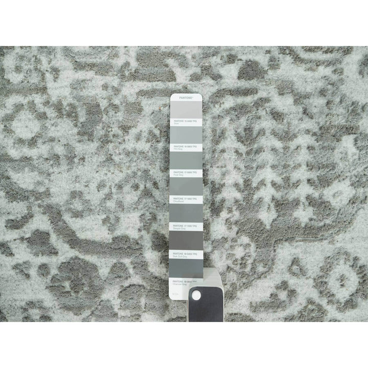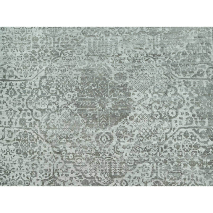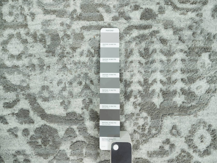 14'0" x 13'11" New Hand Knotted Grey Wool & Silk Square Oriental Rug - MOA10290484