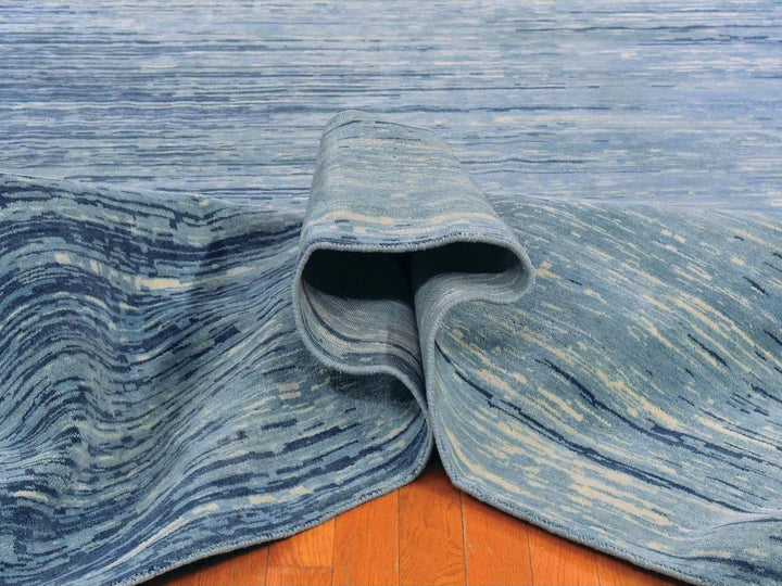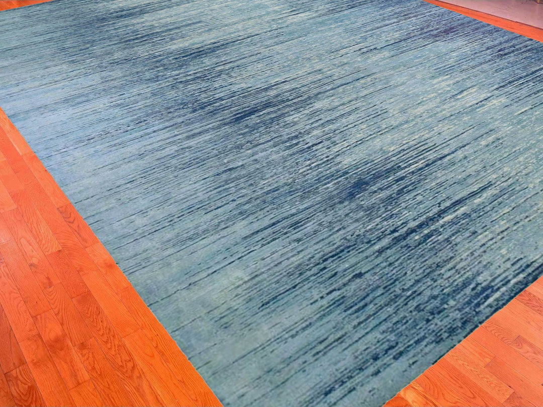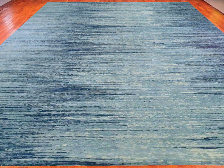 14'1" x 18'0" New Hand Knotted Blue Wool Rectangle Oriental Rug - MOA10266847