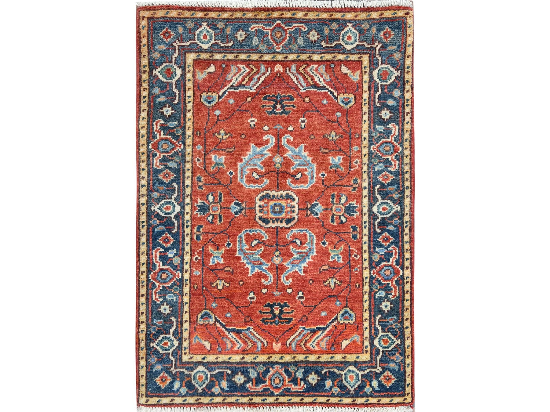2'0" x 2'10" New Hand Knotted Red Wool Rectangle Oriental Rug - MOA10282631