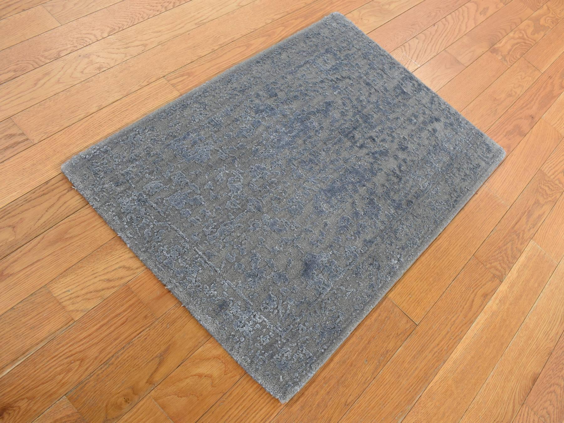 2'0" x 2'10" New Hand Loomed Grey Wool & Silk Rectangle Oriental Rug - MOA10287804