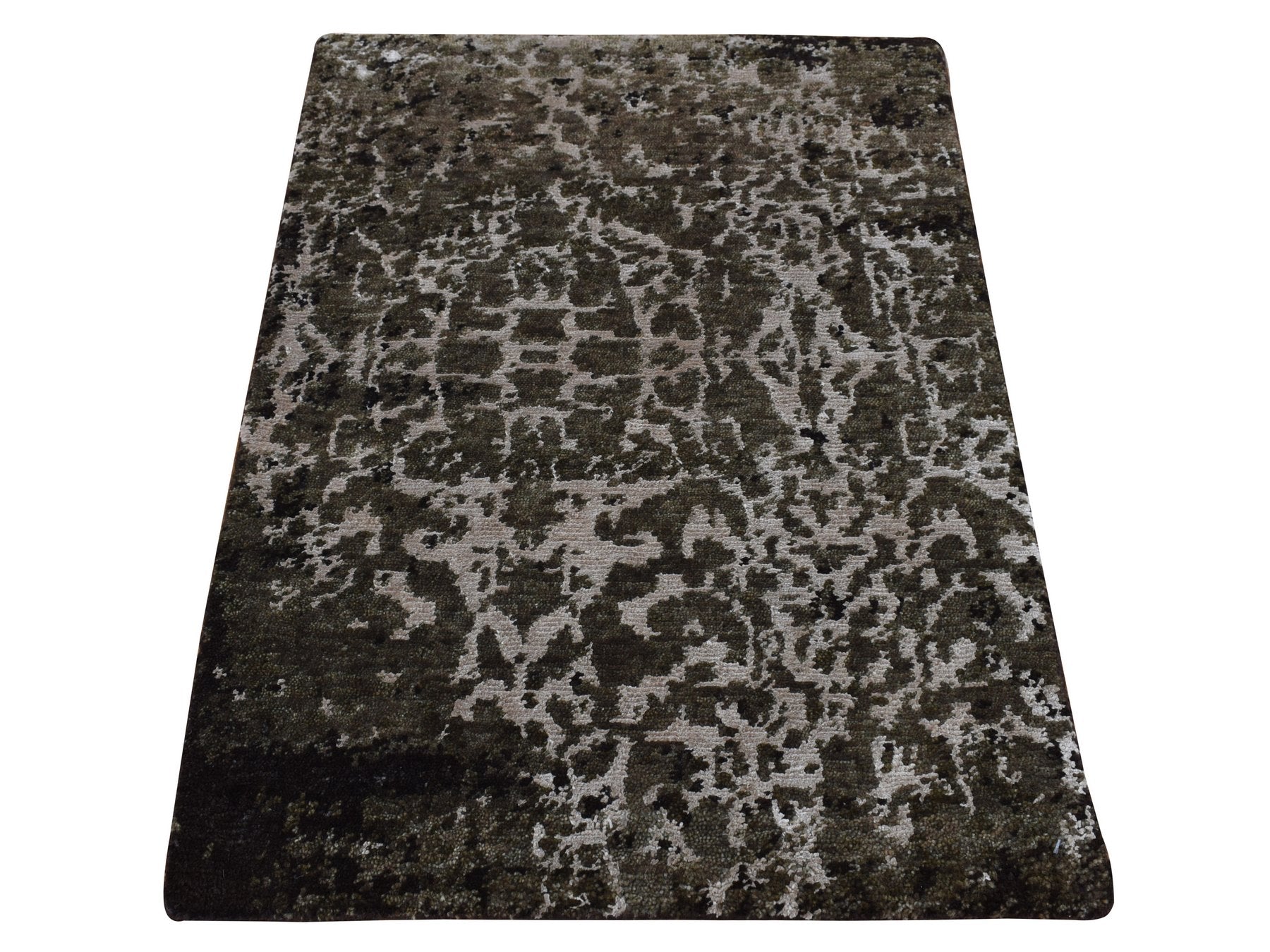 2'0" x 2'9" New Hand Knotted Green Wool & Silk Rectangle Oriental Rug - MOA10287800