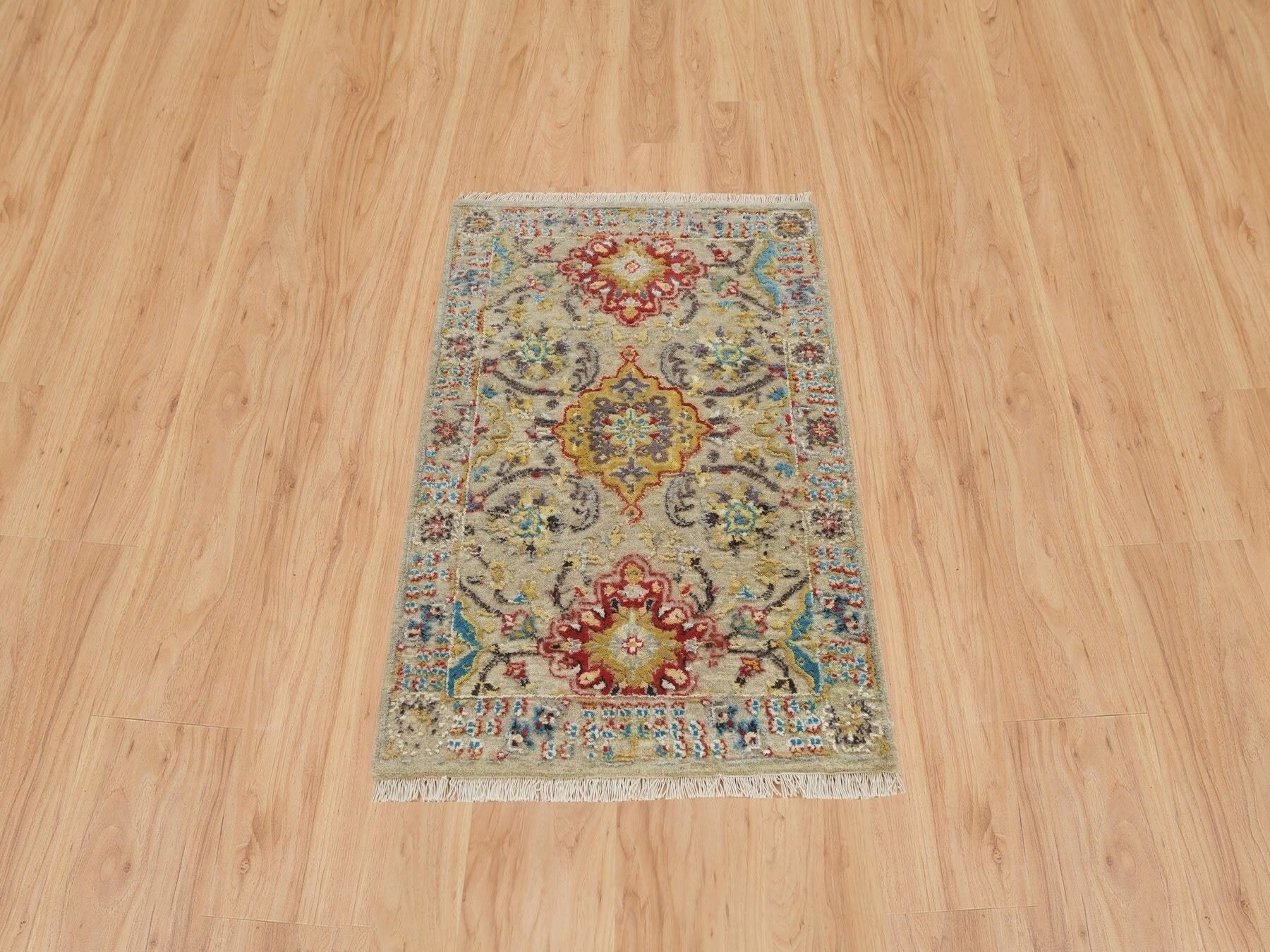 2'0" x 3'0" New Hand Knotted Beige Wool & Silk Rectangle Oriental Rug - MOA10265885
