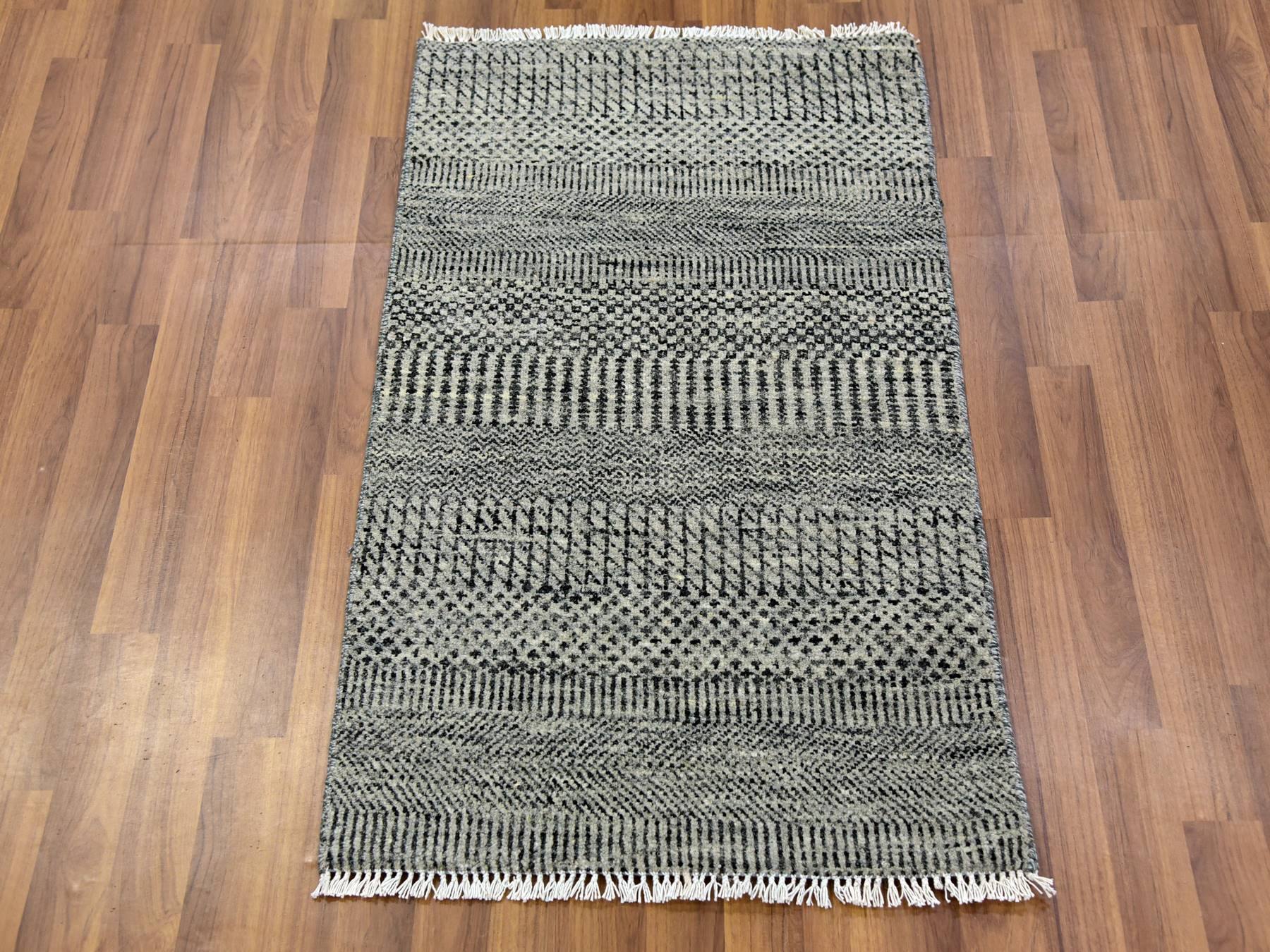 2'0" x 3'2" New Hand Knotted Grey Wool Rectangle Oriental Rug - MOA10279710