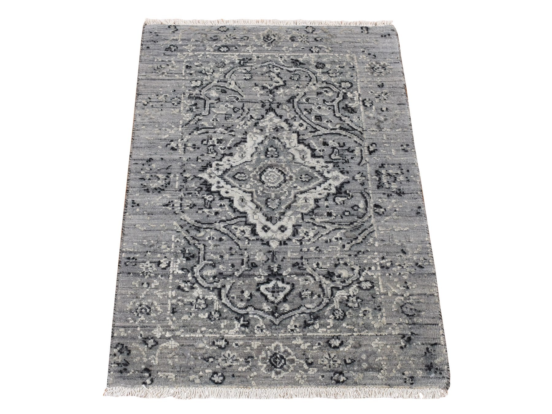 2'1" x 3'1" New Hand Knotted Grey Wool & Silk Rectangle Oriental Rug - MOA10287781