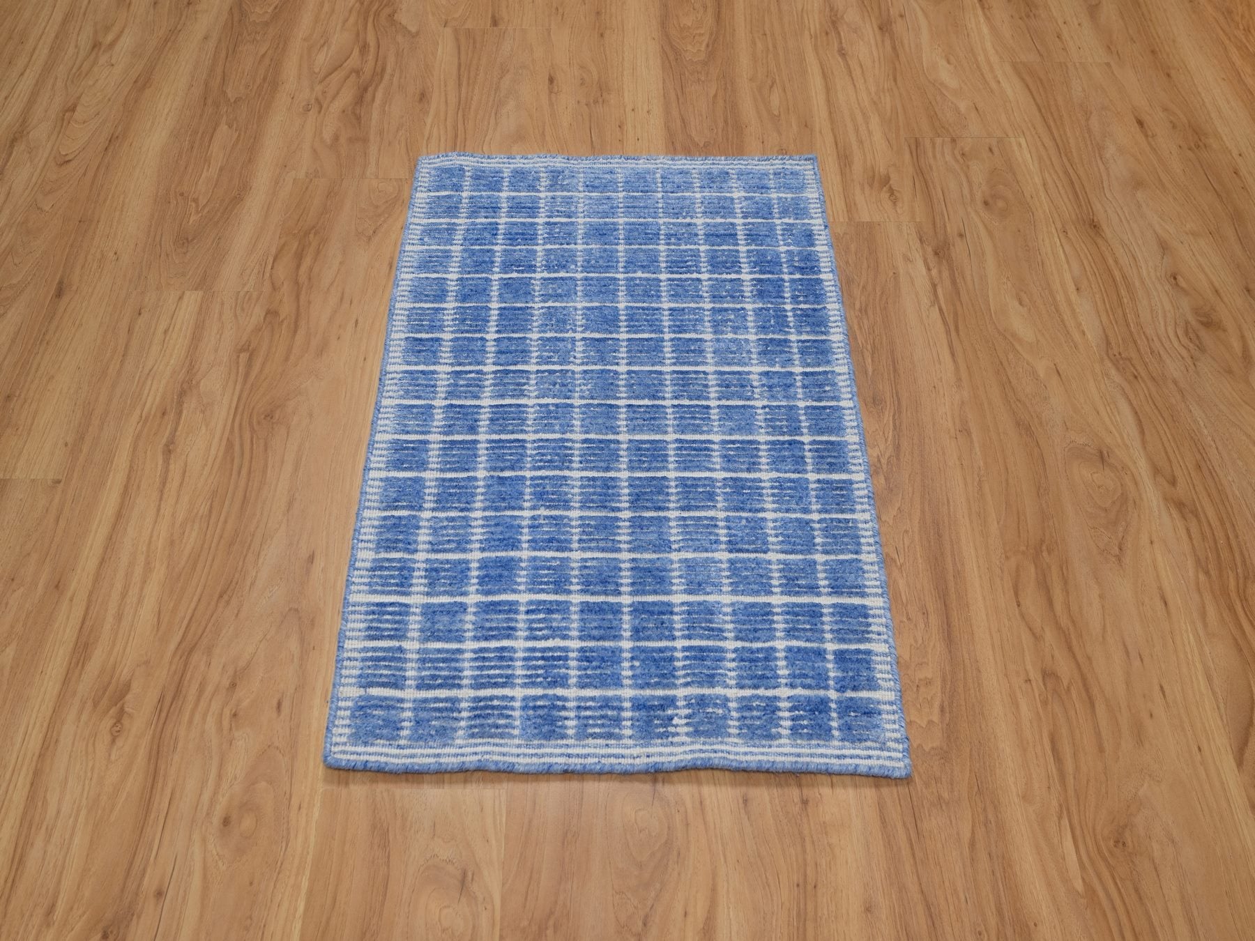 2'1" x 3'1" New Hand Loomed Blue Wool Rectangle Oriental Rug - MOA10291073