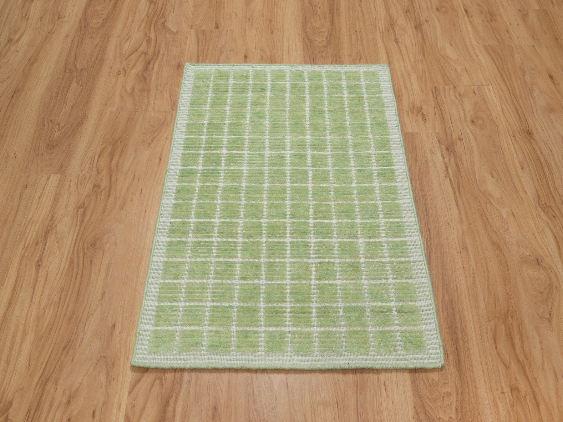 2'2" x 3'1" New Hand Loomed Green Wool Rectangle Oriental Rug - MOA10291064