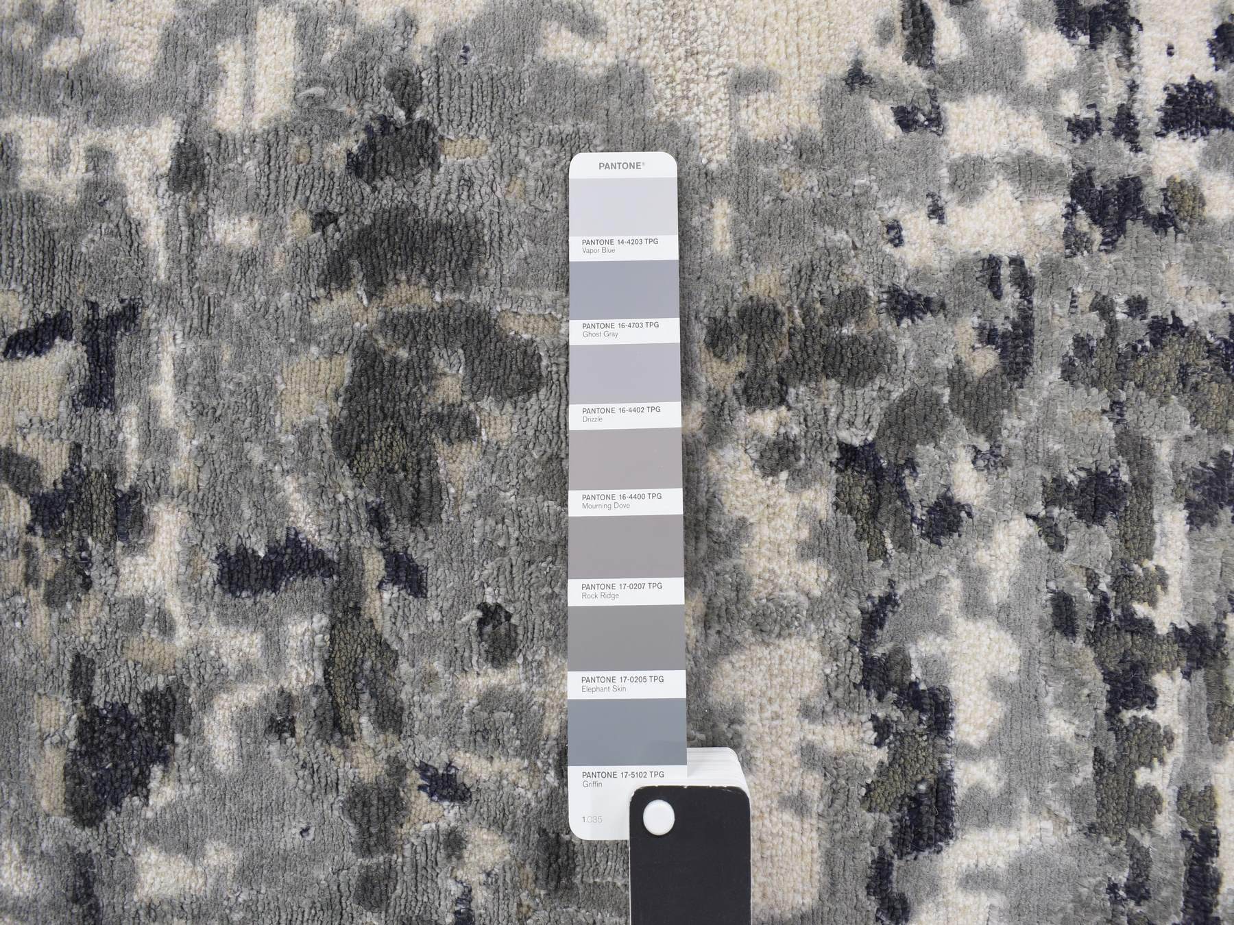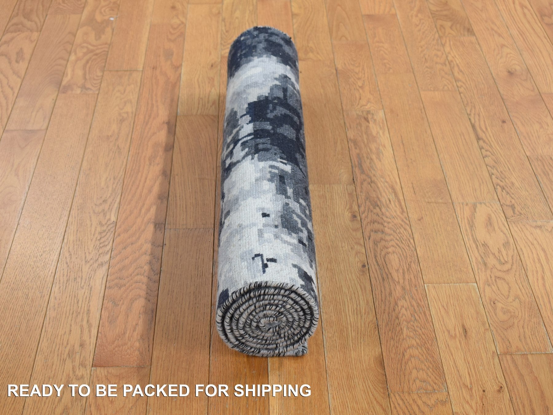 2'7" x 5'9" New Hand Knotted Grey Wool & Silk Rectangle Oriental Rug - MOA10278051