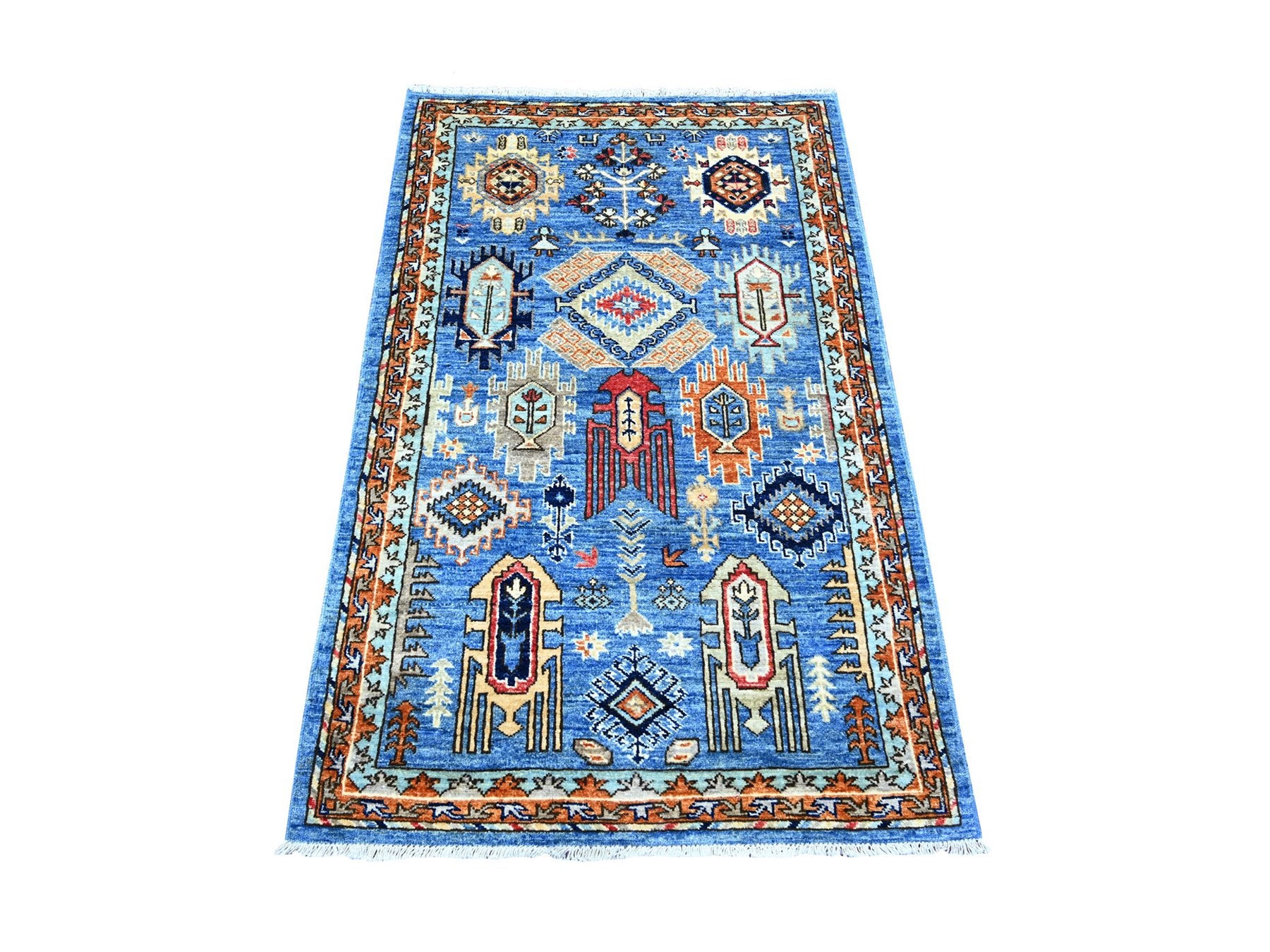 3'0" x 4'0" New Hand Knotted Blue Wool Rectangle Oriental Rug - MOA10274773