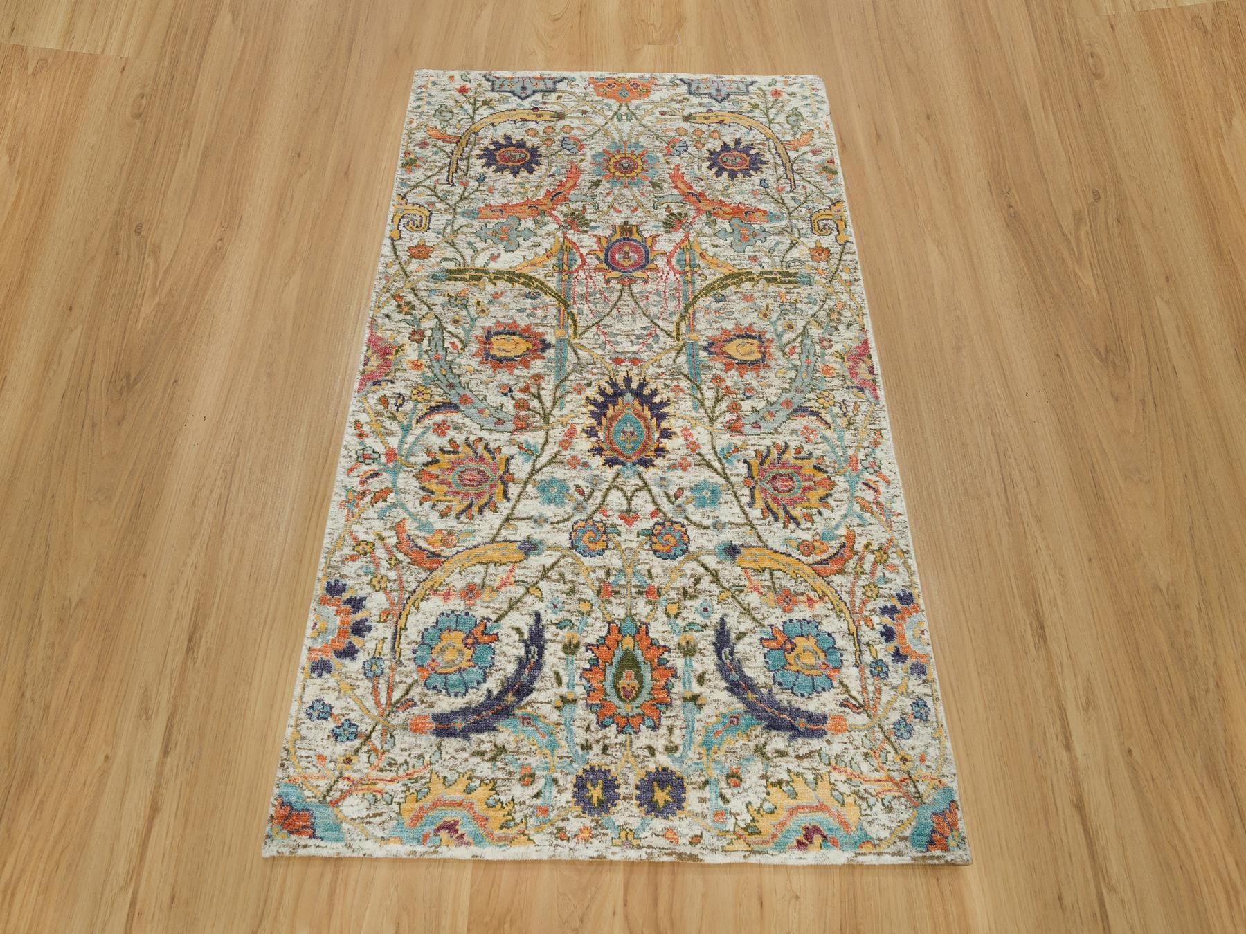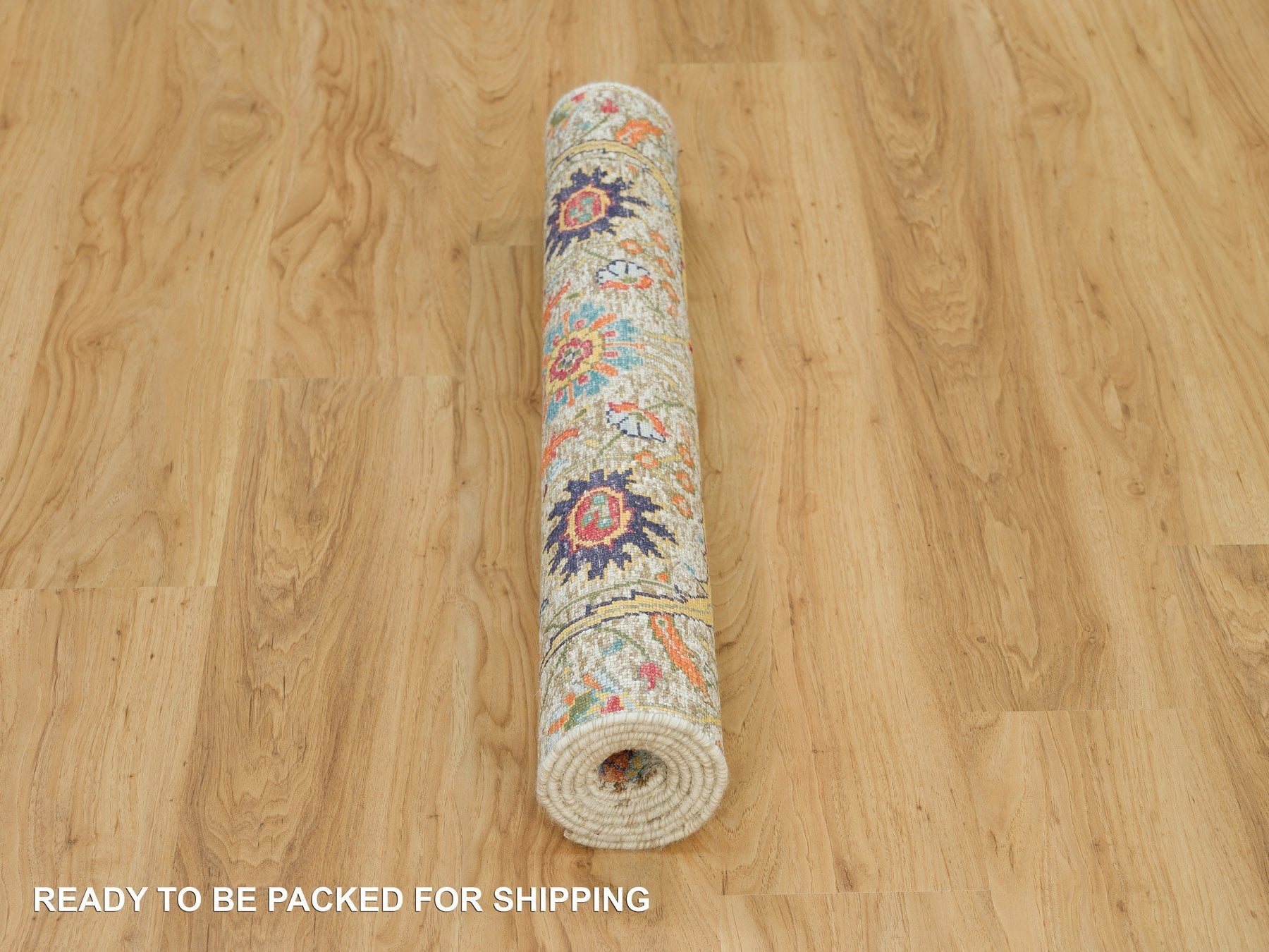 3'0" x 5'0" New Hand Knotted Beige Wool & Silk Rectangle Oriental Rug - MOA10290225