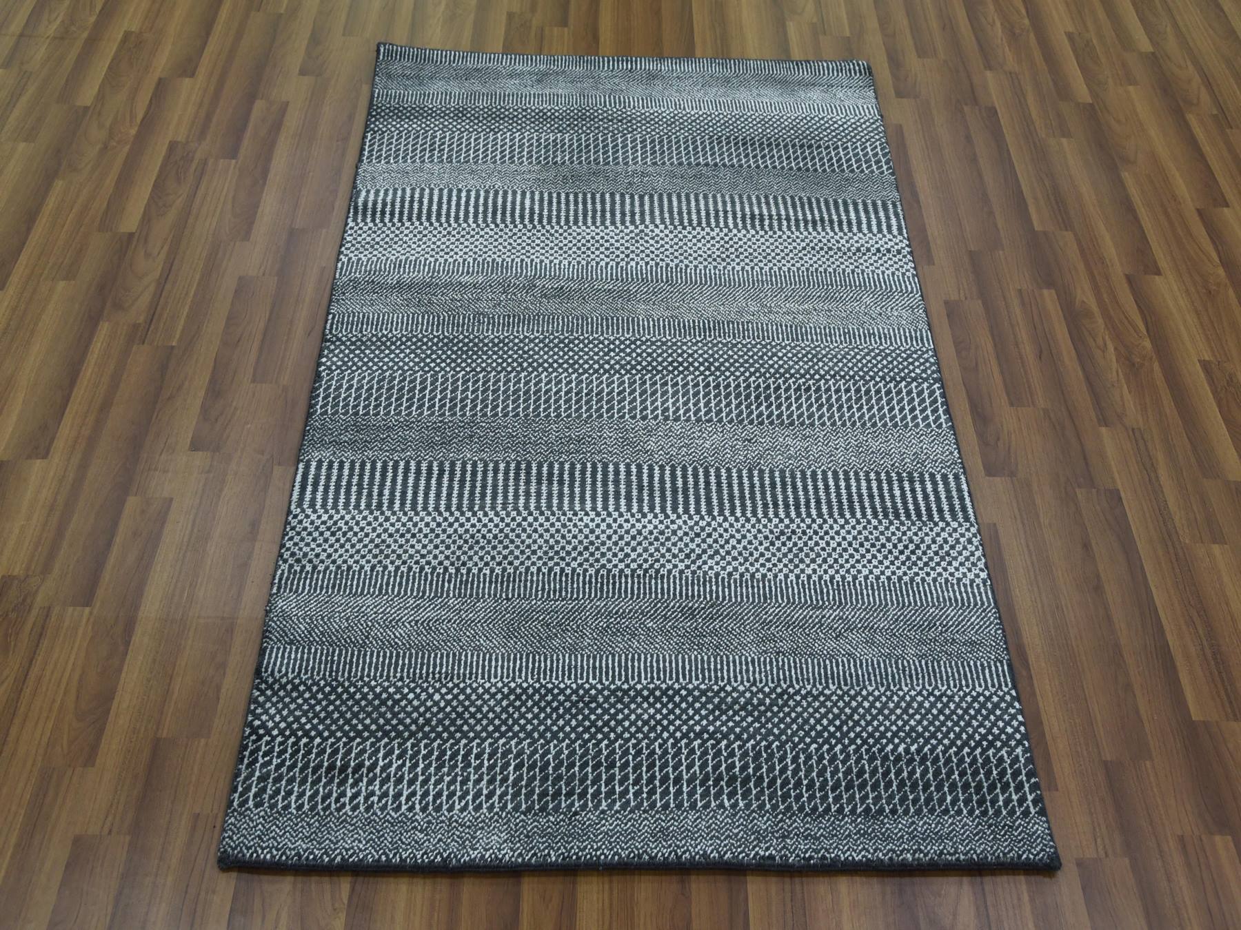 3'3" x 5'0" New Hand Knotted Grey Wool & Silk Rectangle Oriental Rug - MOA10279253