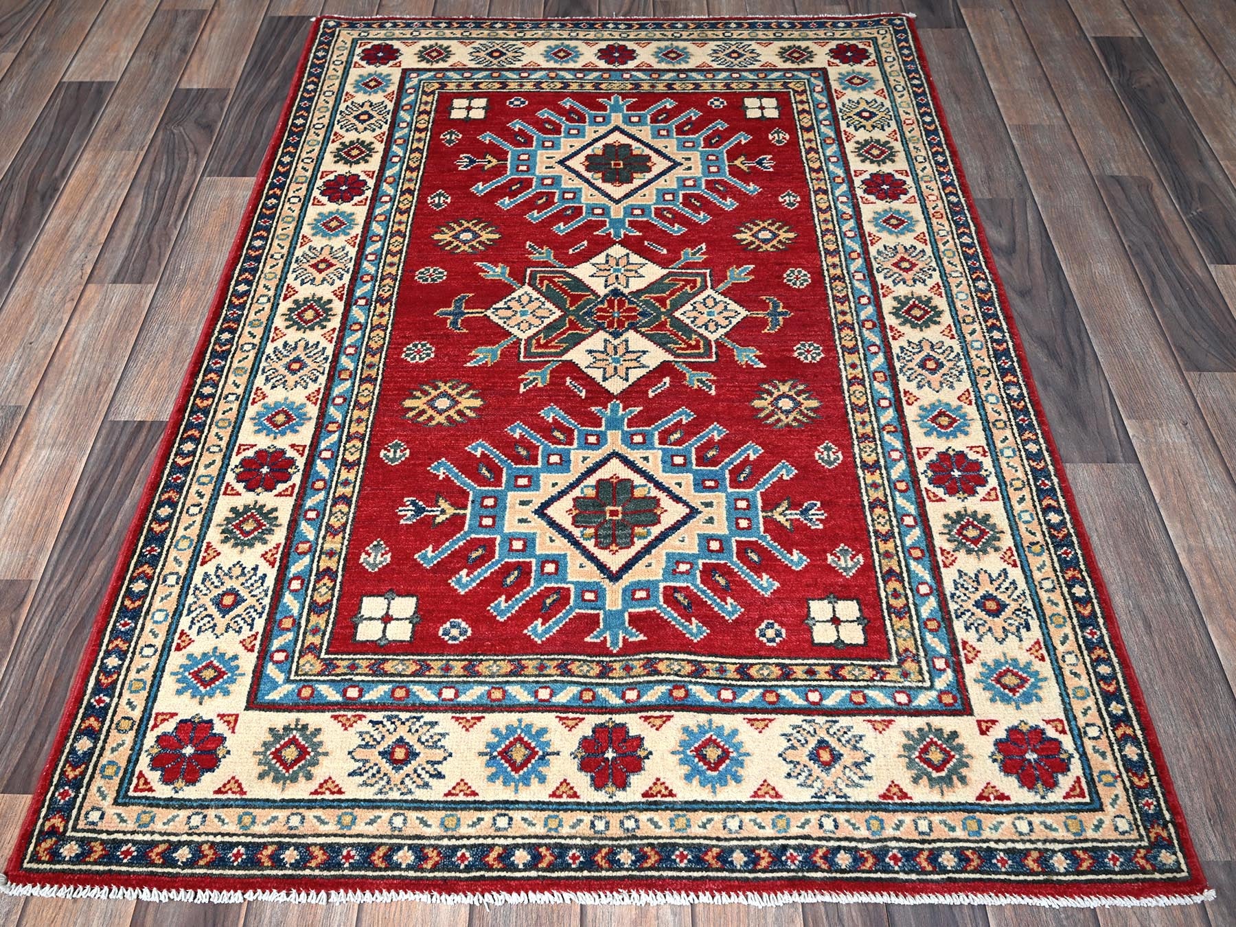 3'5" x 5'0" New Hand Knotted Red Wool Rectangle Oriental Rug - MOA102340