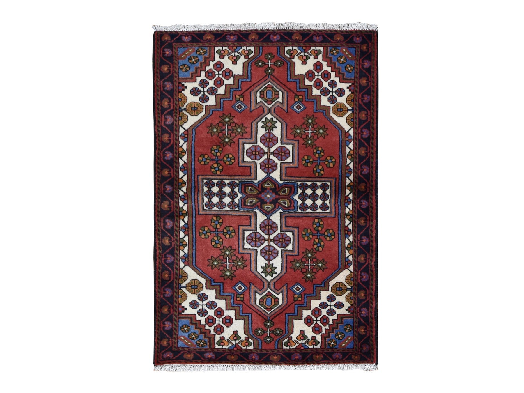 3'5" x 5'3" New Hand Knotted Red Wool Rectangle Oriental Rug - MOA10287379