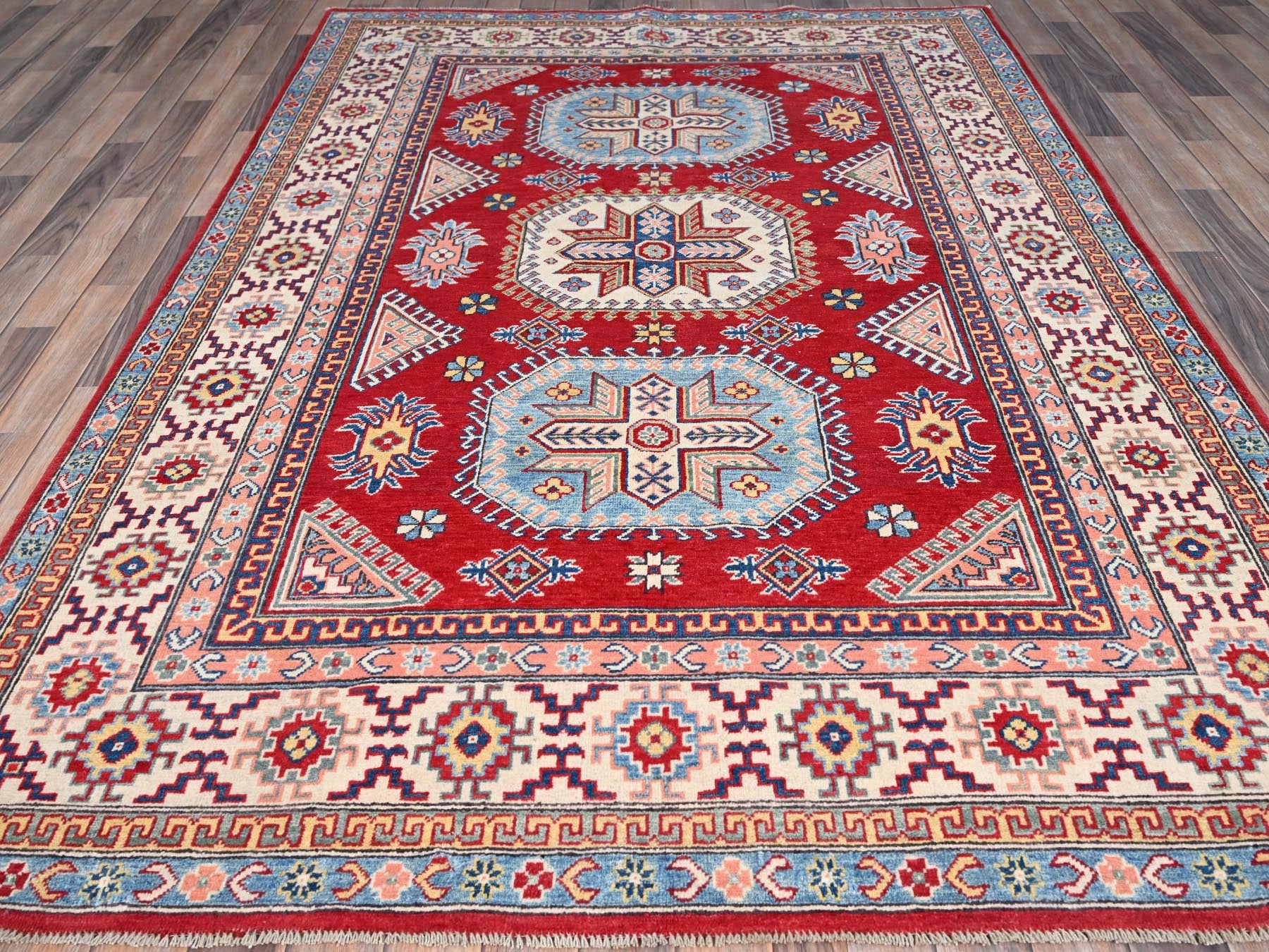 6'0" x 8'9" New Hand Knotted Red Wool Rectangle Oriental Rug - MOA10286788