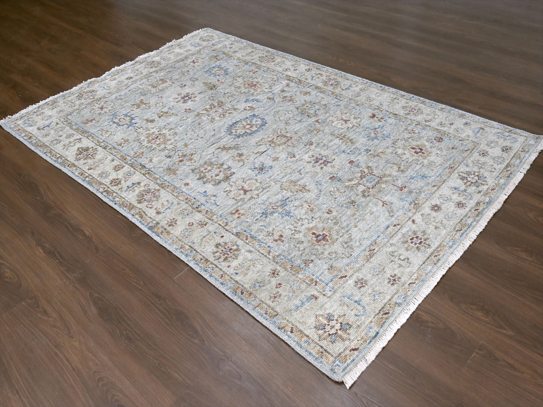 6'1" x 9'0" New Hand Knotted Blue Wool Rectangle Oriental Rug - MOA10284885
