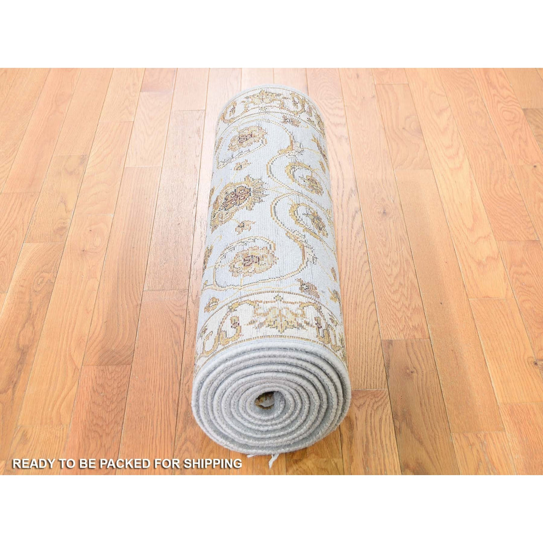 2'7" x 12'0" New Hand Knotted Grey Wool & Silk Runner Oriental Rug - MOA10243170