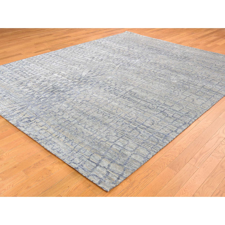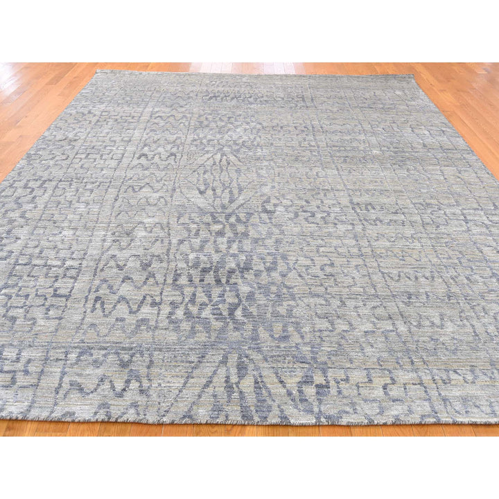 8'0" x 10'1" New Hand Knotted Grey Wool & Silk Rectangle Oriental Rug - MOA10240611