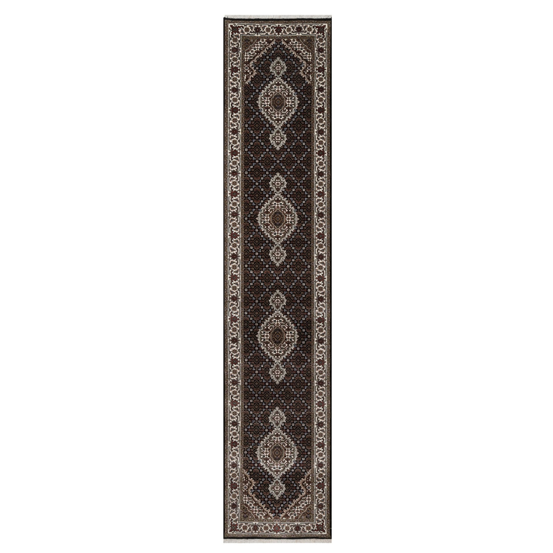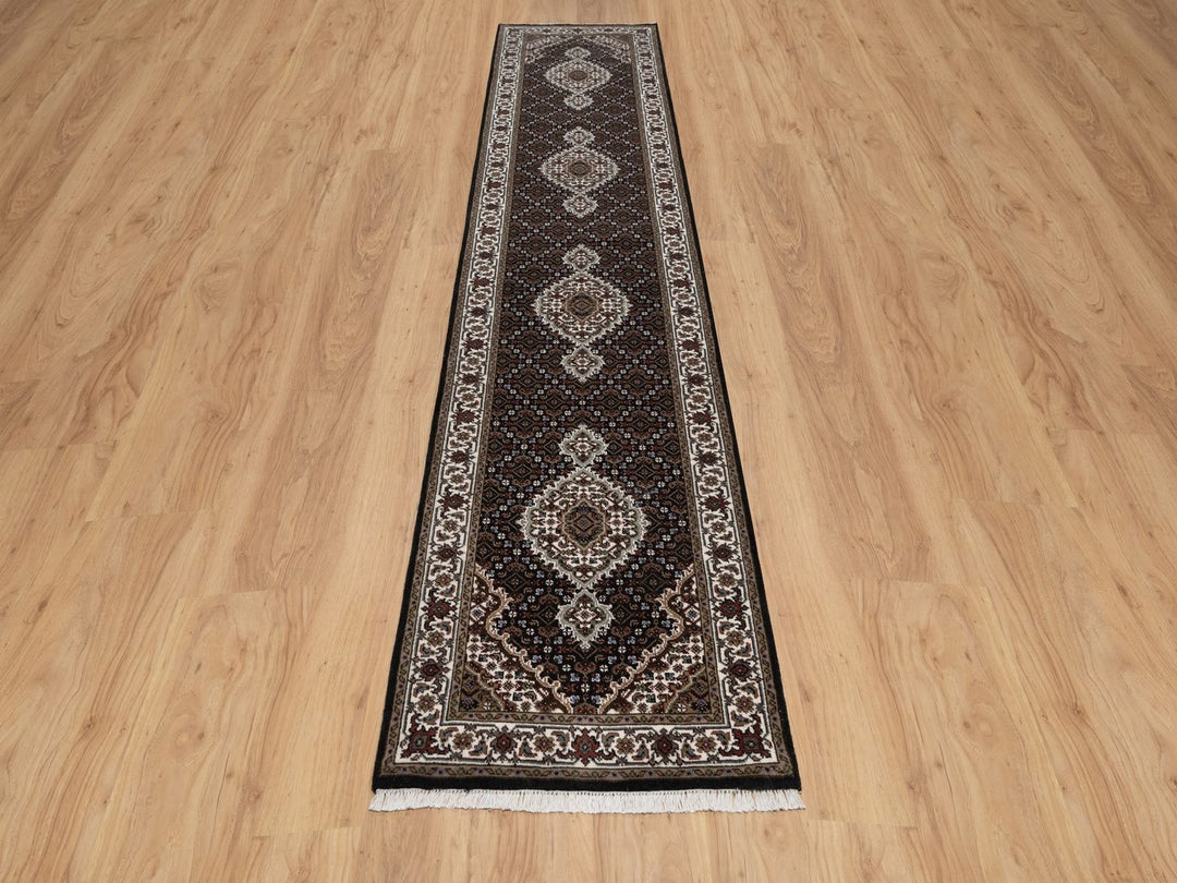 2'6" x 12'2" New Hand Knotted Black Wool Runner Oriental Rug - MOA10291613