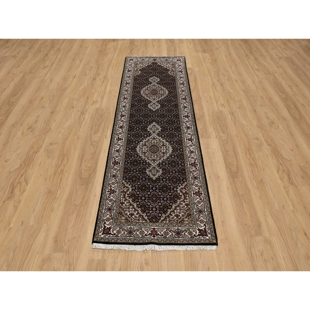 2'7" x 8'2" New Hand Knotted Black Wool Runner Oriental Rug - MOA10291618