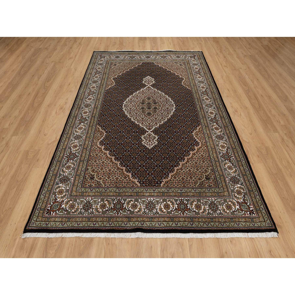 5'11" x 9'1" New Hand Knotted Black Wool Rectangle Oriental Rug - MOA10291597