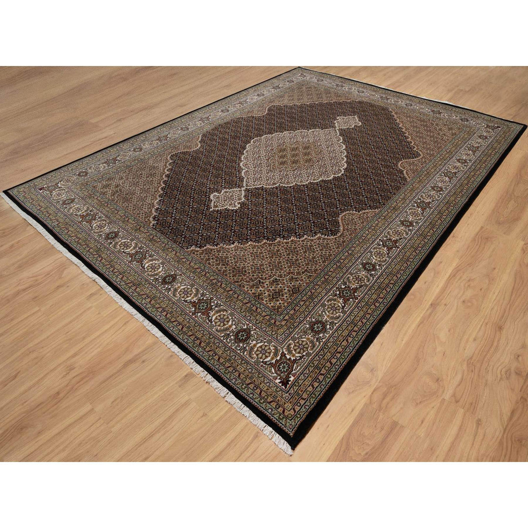 8'10" x 12'5" New Hand Knotted Black Wool Rectangle Oriental Rug - MOA10291600