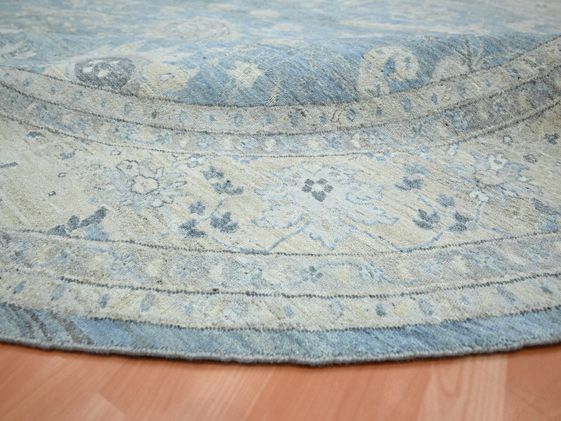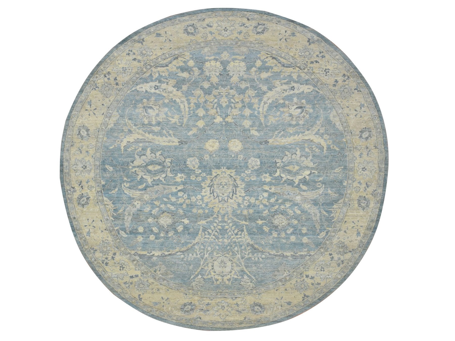 11'11" x 11'10" New Hand Knotted Blue Wool Round Oriental Rug - MOA10275766