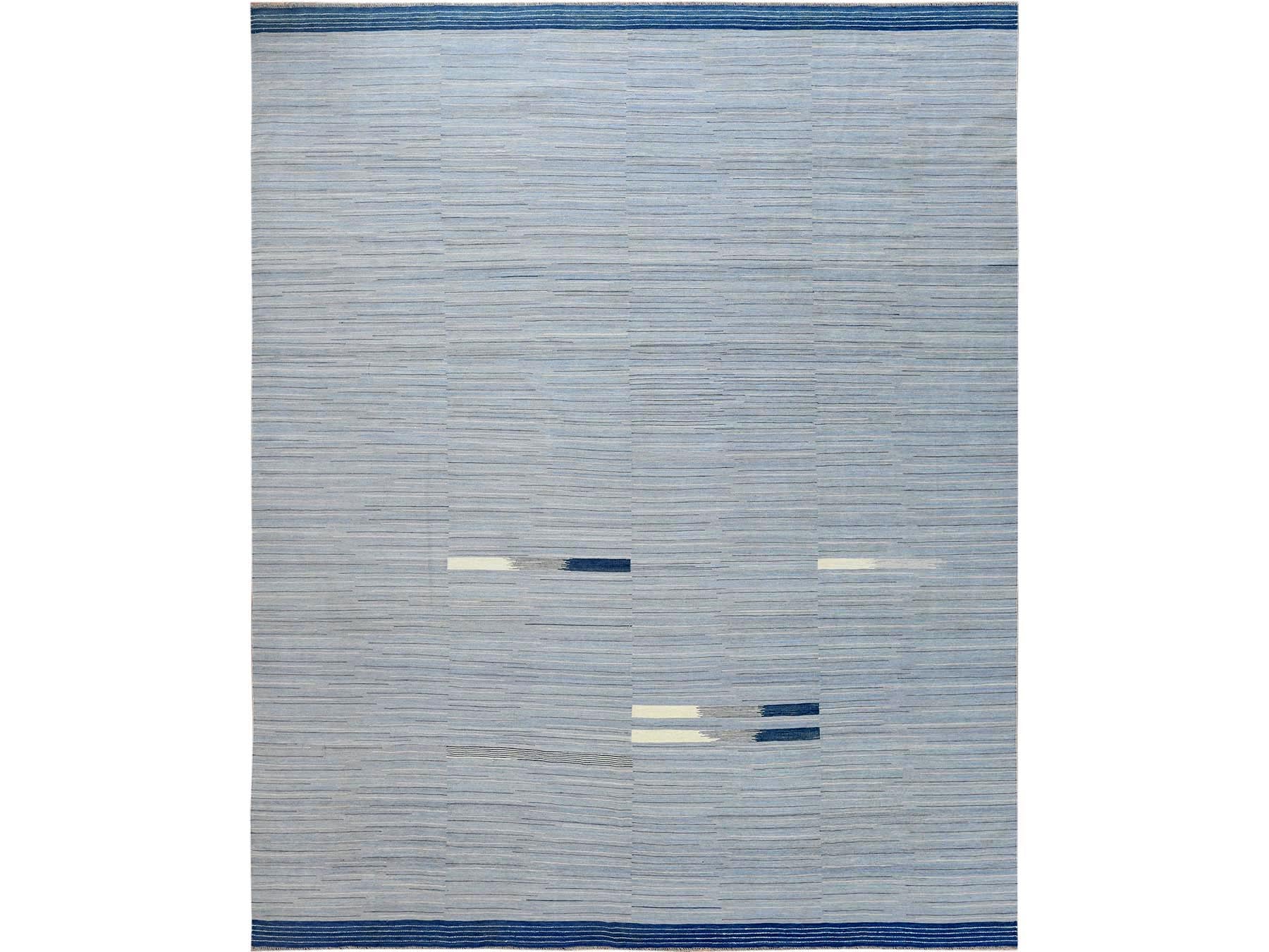 12'1" x 15'0" New Hand Woven Blue Wool Rectangle Oriental Rug - MOA10260107