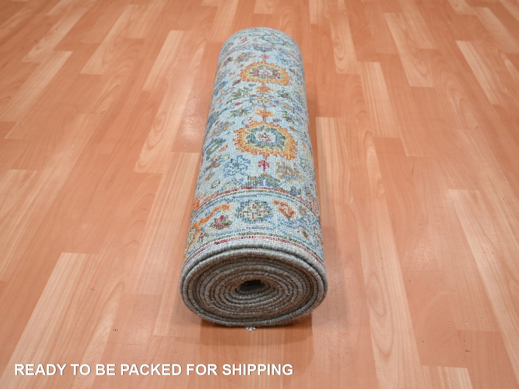 2'6" x 17'10" New Hand Knotted Blue Wool Runner Oriental Rug - MOA10275810