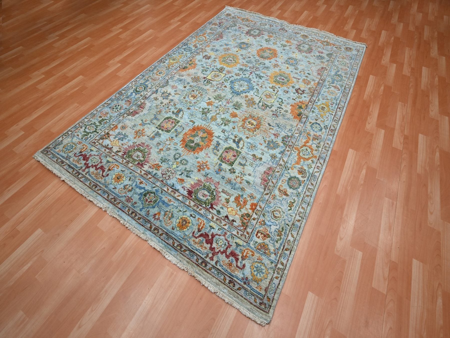 6'0" x 9'0" New Hand Knotted Blue Wool Rectangle Oriental Rug - MOA10275802