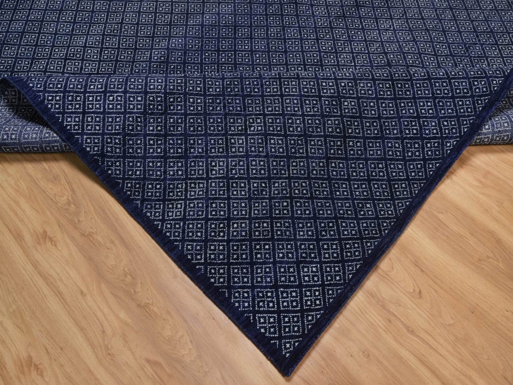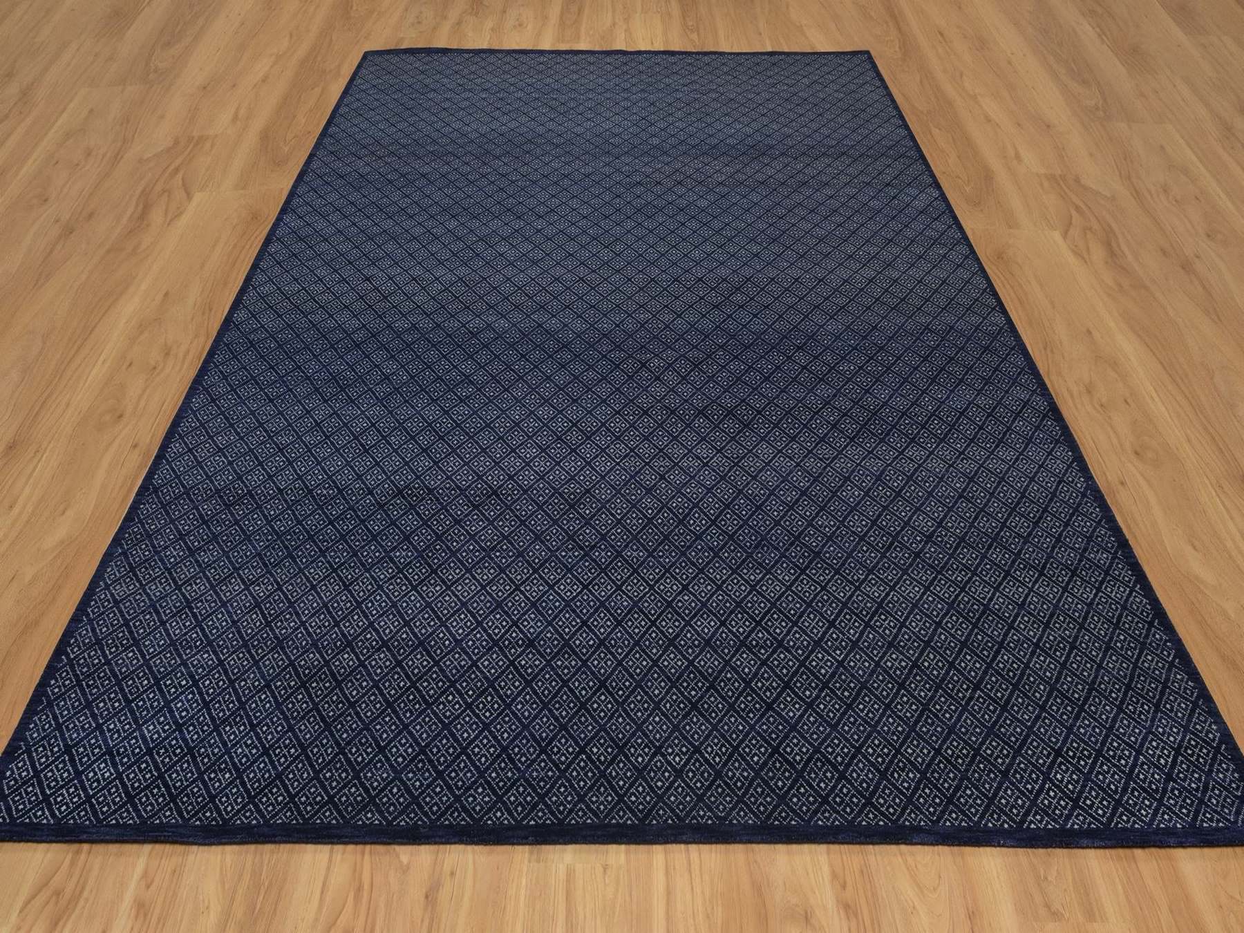 9'0" x 11'7" New Hand Knotted Blue Wool Rectangle Oriental Rug - MOA10292342