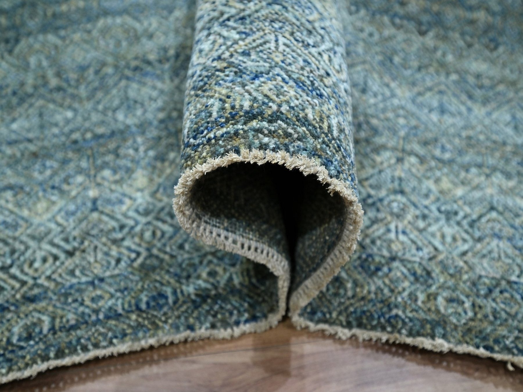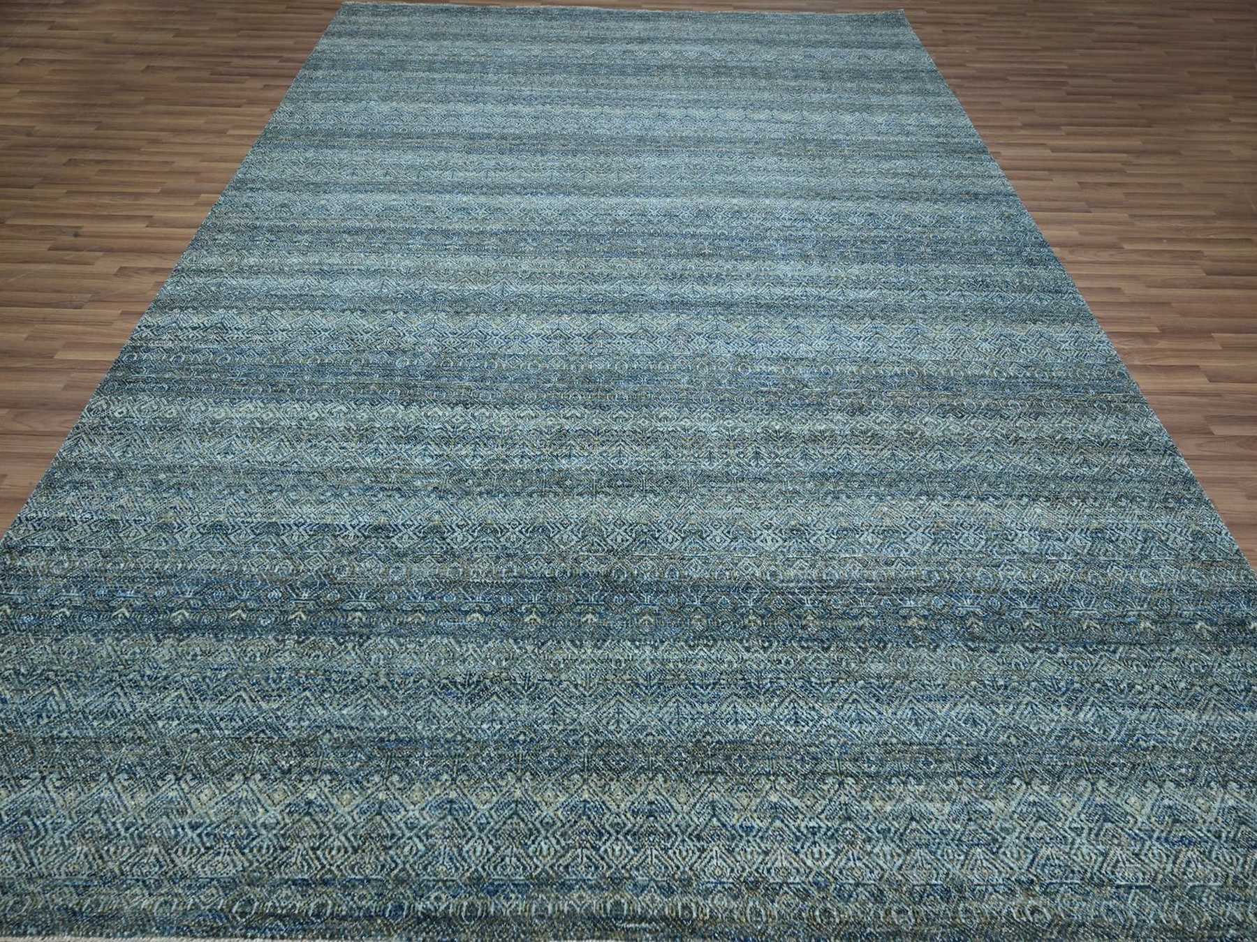 9'1" x 12'0" New Hand Knotted Blue Wool Rectangle Oriental Rug - MOA10276857