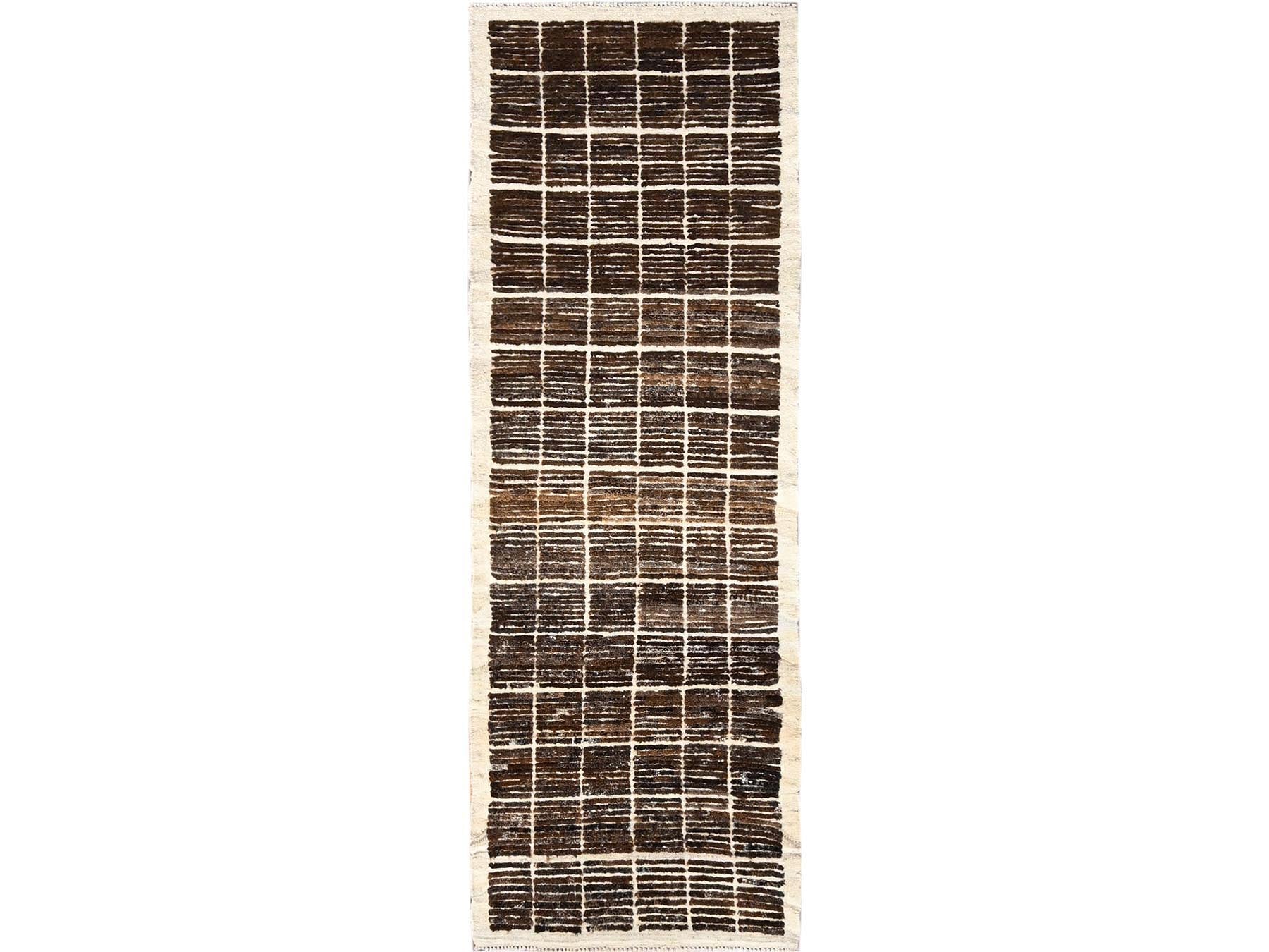 2'8" x 7'8" New Hand Knotted Brown Wool Runner Oriental Rug - MOA1021768