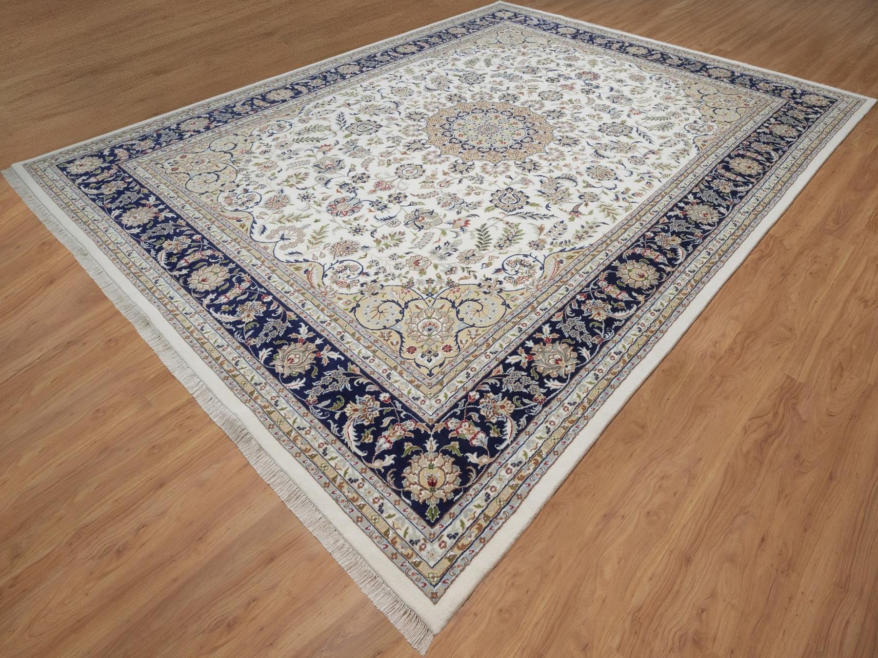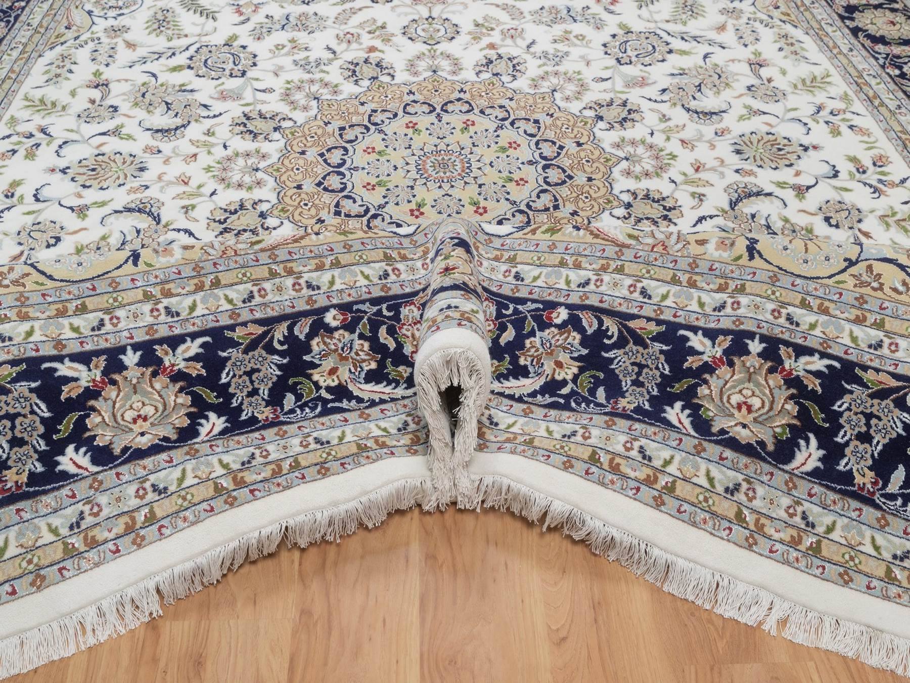 11'8" x 15'5" New Hand Knotted Ivory Wool & Silk Rectangle Oriental Rug - MOA10292037