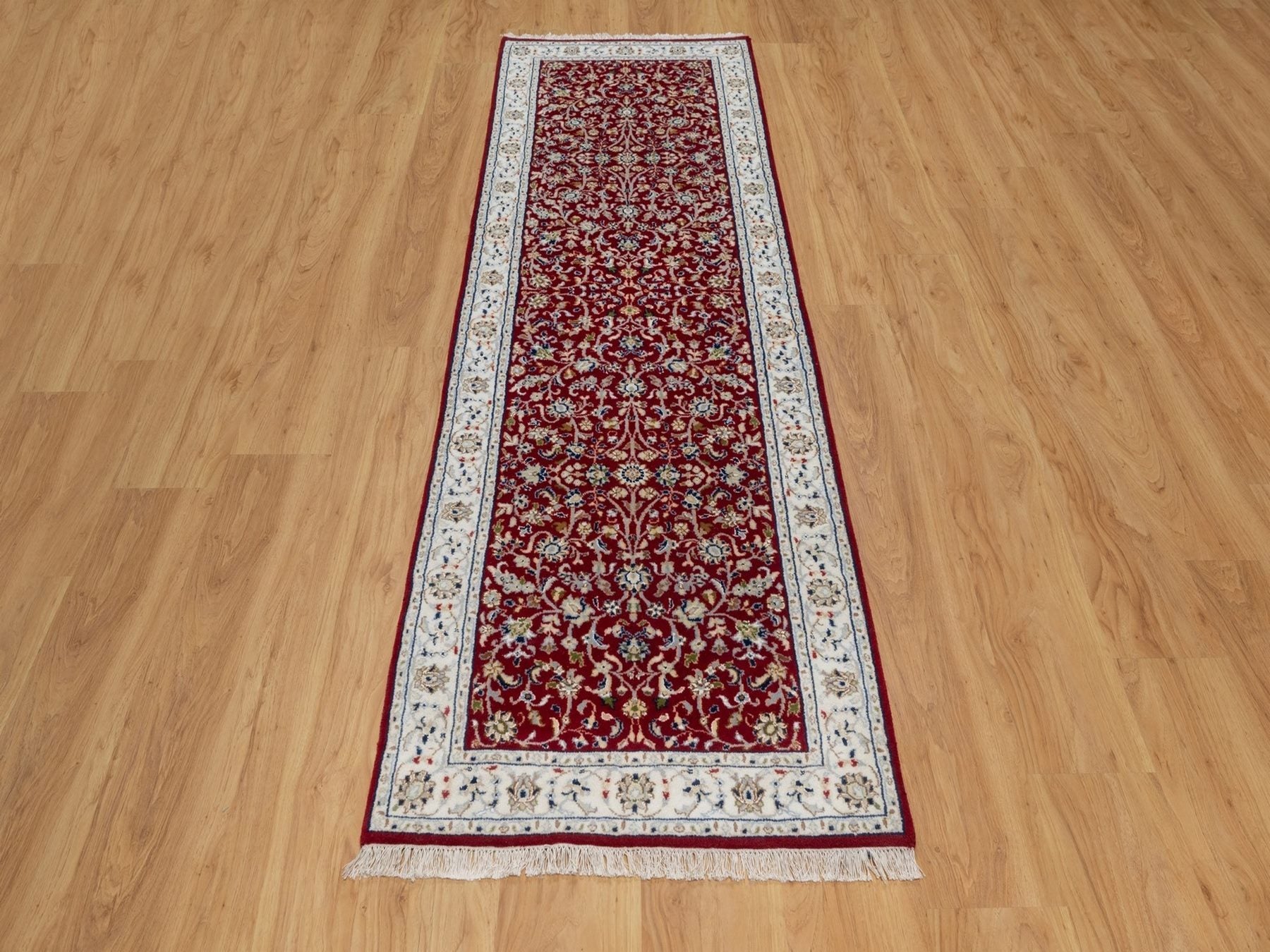2'7" x 8'3" New Hand Knotted Red Wool & Silk Runner Oriental Rug - MOA10292119
