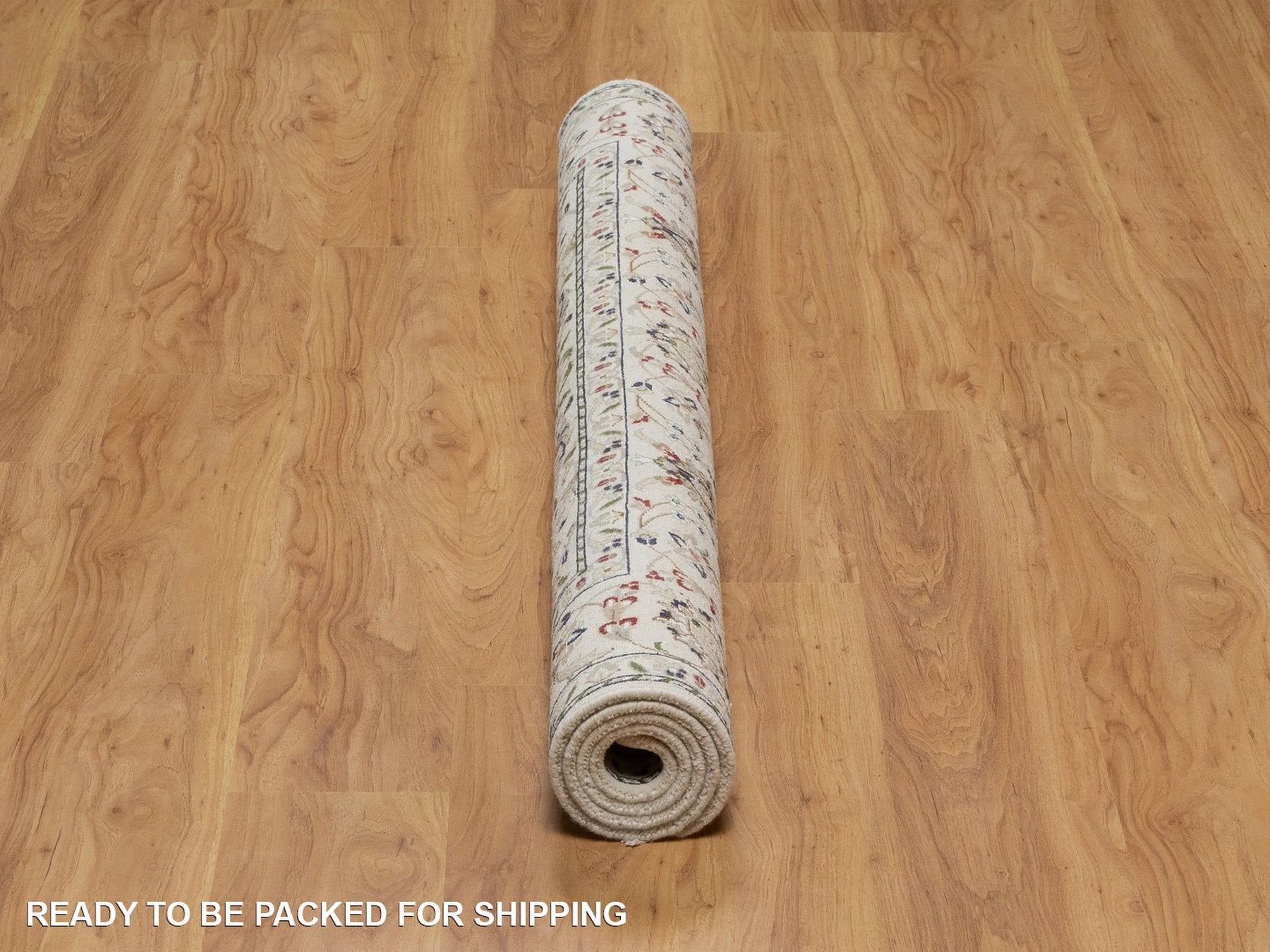 5'1" x 5'2" New Hand Knotted Ivory Wool & Silk Square Oriental Rug - MOA10292098